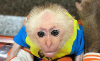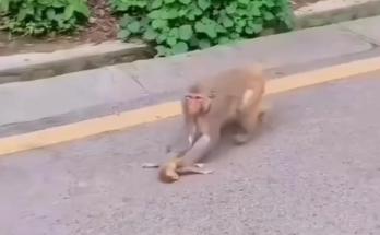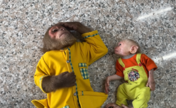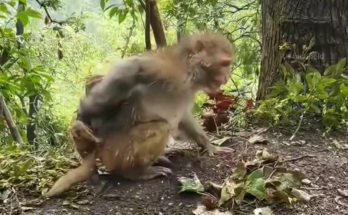 In the heart of a dense green forest, where the canopy formed a living roof of leaves and sunlight filtered down in soft patches, a mother monkey carefully guided her …