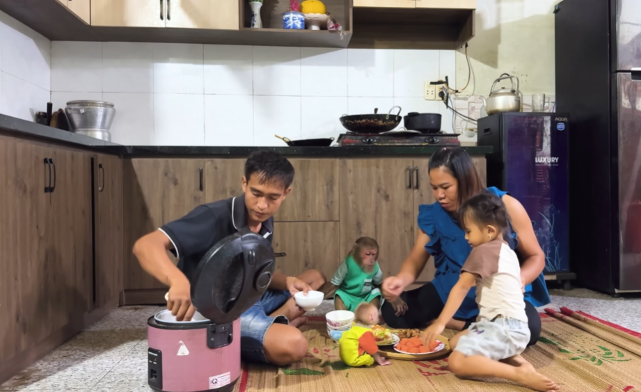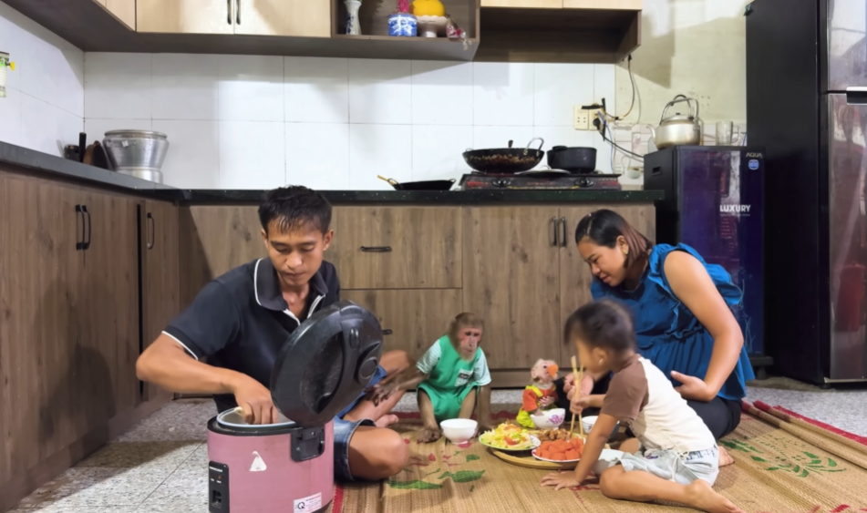 And so, that evening, CUTIS and the baby monkey joined in—passing rice, sharing fruit, and making the children laugh with silly monkey tricks. What began as a day of fear turned into a lesson about compassion, bravery, and the hidden strength of his parents’ mysterious journey.