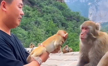The baby monkey’s face softened. He leaned closer and tapped the baby’s tiny hand with his finger. To his surprise, the baby’s hand curled instinctively around his finger. The monkey’s eyes widened even more, then filled with wonder. “He… he likes me!”