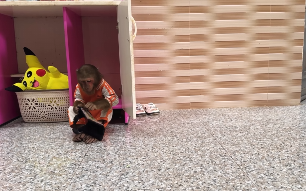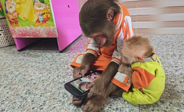 For the next few hours, CUTIS and the baby monkey stayed close, fascinated by every movement and sound the newborn made. When the baby yawned, CUTIS giggled softly. When he sneezed, the baby monkey jumped back in surprise, then crept closer again to investigate. Every tiny action seemed magical, as if they were witnessing a miracle unfolding before their very eyes.