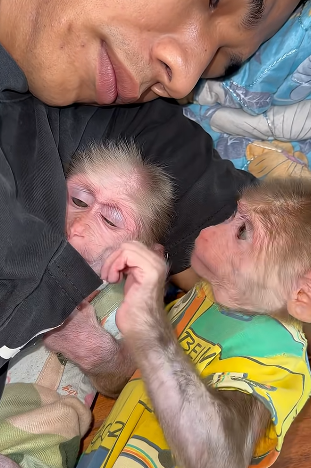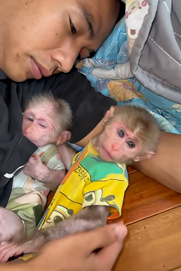 Other times, the monkey would lie down beside the cradle, his little paw resting on the edge as though promising, “Don’t worry, I’m here.” The baby, in turn, often calmed down, eyes drifting toward the monkey before settling into sleep.