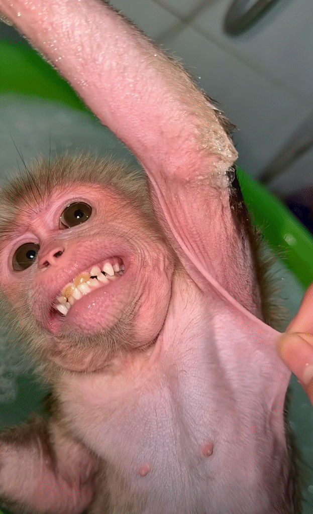 Bibi didn’t mind being the center of attention. She kept giggling, wriggling happily as though she had discovered the greatest joy in the world. The guests were charmed. They left the house later with smiles, still chuckling about the funny little monkey who loved armpit scratches.