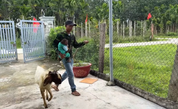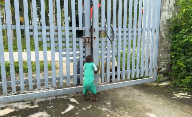 From inside, faint sounds could be heard — clinking dishes, rustling bags, and Dad humming cheerfully. The monkey looked back at CUTIS with wide eyes as if to say, “This is serious!”