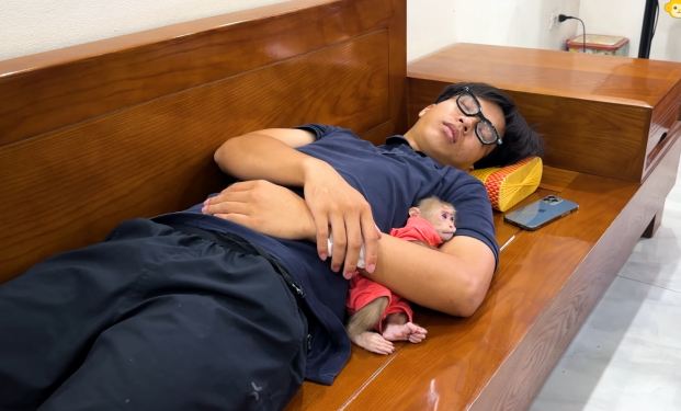 Back in the bedroom, she placed it right under Dad’s nose. “Sniff-sniff, Dad! Wake up! Breakfast is here!”