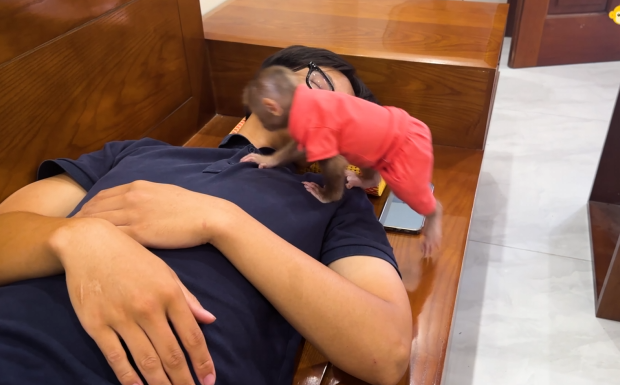 Finally, they played hide-and-seek, with Lala hiding behind curtains and under tables, giggling loudly each time Dad pretended not to see her.