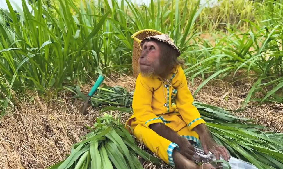 As night fell, Dad prepared a bottle. CUTIS stayed right by his side, occasionally nudging Dad’s leg as if to say, Don’t spill it! The baby monkey, meanwhile, insisted on climbing onto the chair next to the crib, leaning over to peek in. His little fingers reached carefully to touch the baby’s toes, fascinated by how tiny they were.