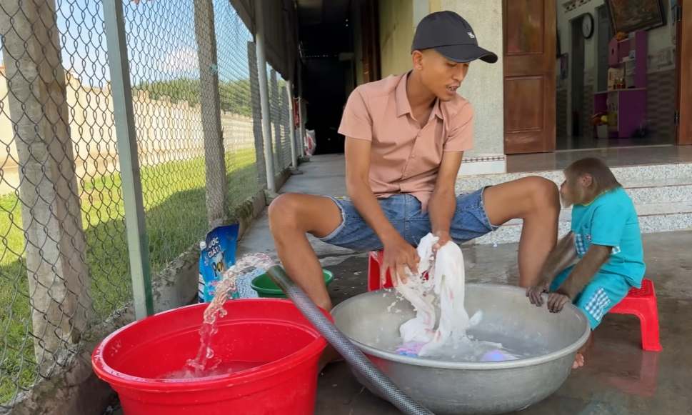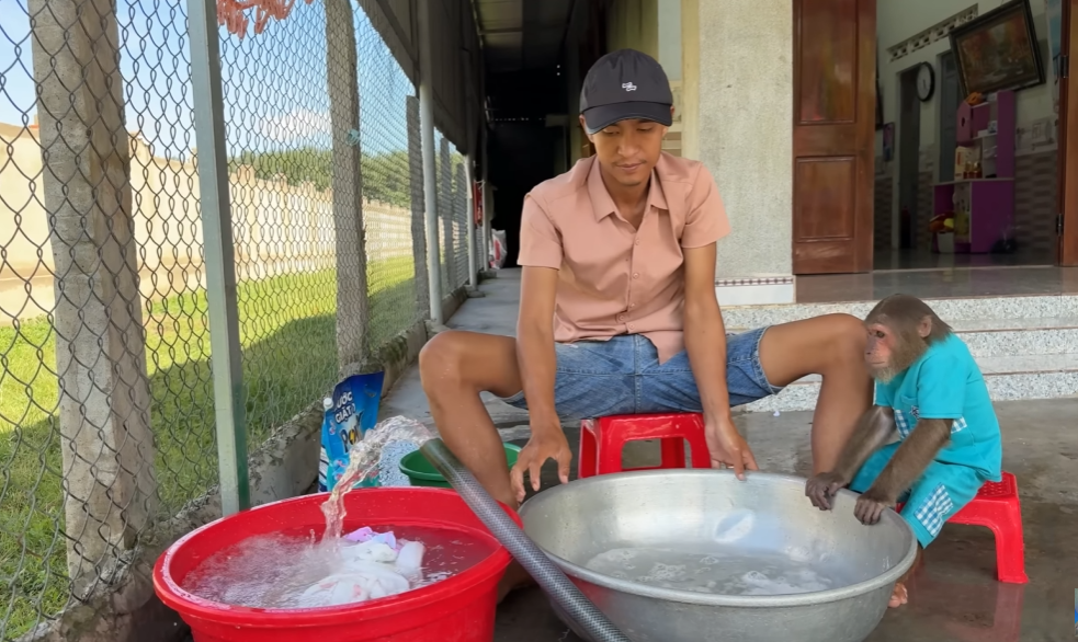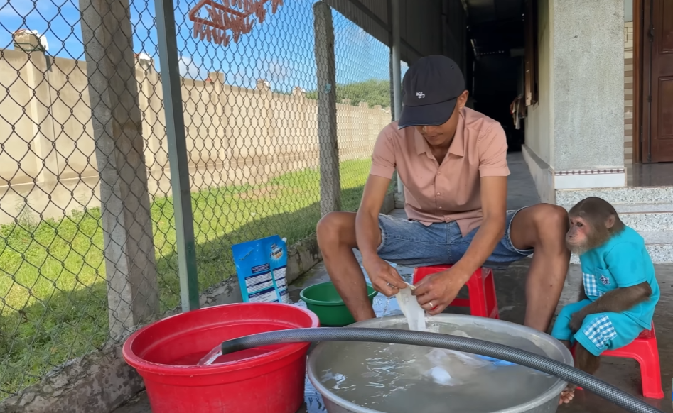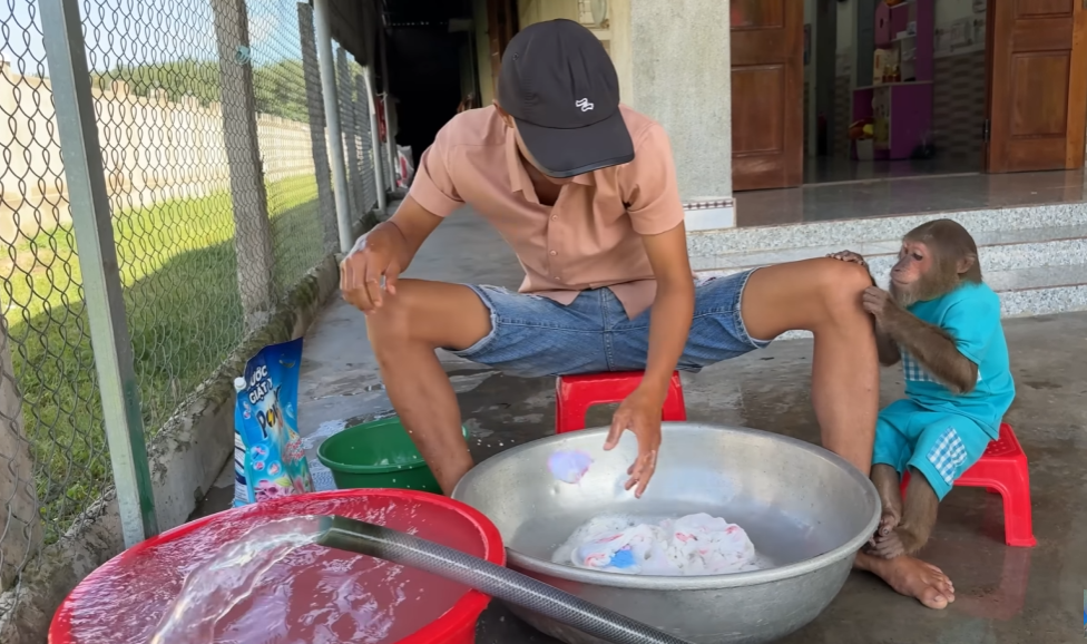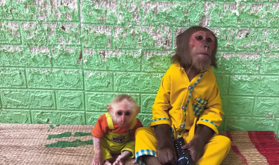 The baby monkey, on the other hand, took on the role of entertainer. He’d bring toys, copy Dad’s movements, or simply sit near the crib and chatter softly. The baby seemed fascinated by his energy, often calming down just by watching him.