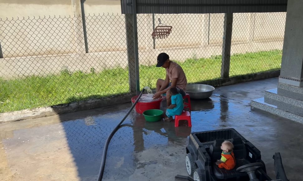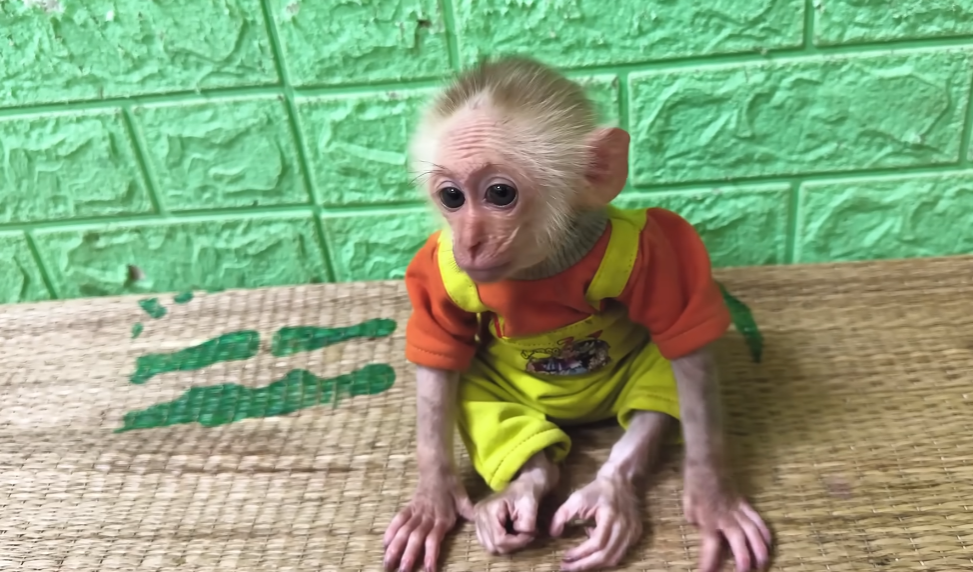 The next morning, soft sunlight streamed through the windows. Mom, still resting, smiled weakly at the sounds of giggles and coos from the living room. She peeked in quietly, her heart melting at the sight: Dad sitting on the floor with the newborn in his lap, CUTIS lying beside them, and the baby monkey bouncing excitedly, making funny faces to entertain the baby.
