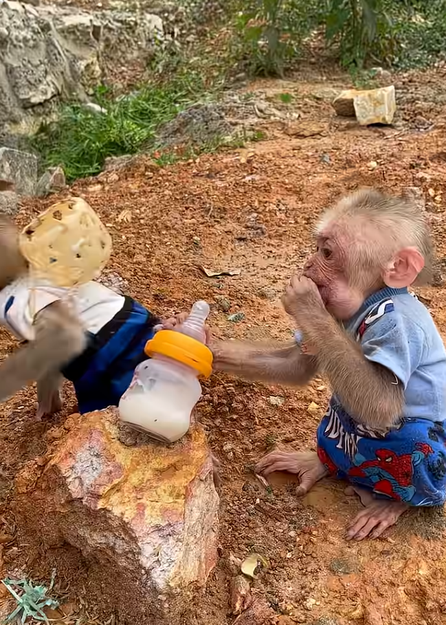 As they made their way back with baskets of bananas, the monkeys heard a rustling sound. From the bushes emerged a small deer, limping and looking weak. The little animal’s leg was caught in a tangle of vines.