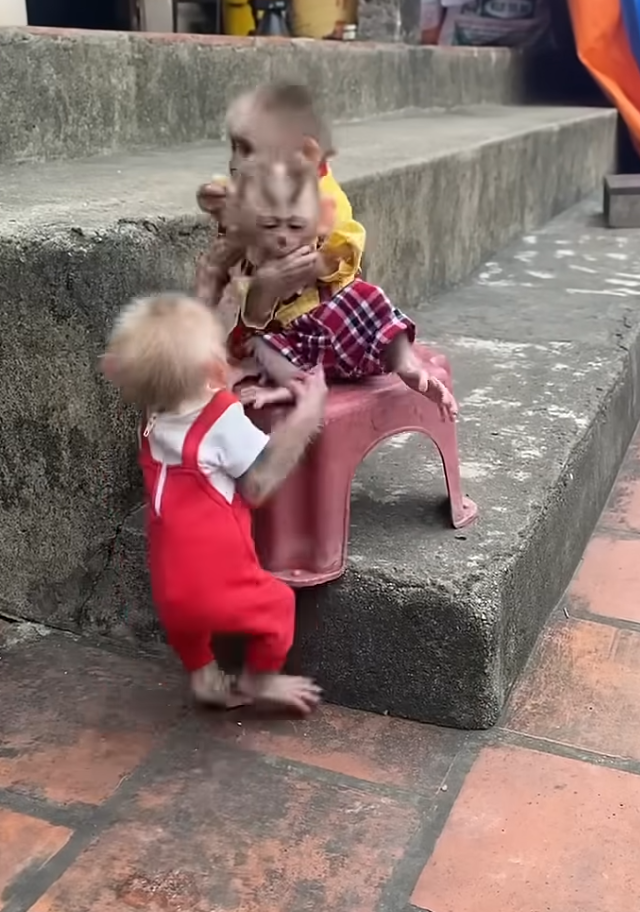 The monkeys basked in the attention. Pu especially loved showing off. He even exaggerated his falls, tumbling dramatically to make the children laugh louder. Bon, encouraged, copied him with goofy flops. Kevin, though more serious, couldn’t resist putting on a show too.