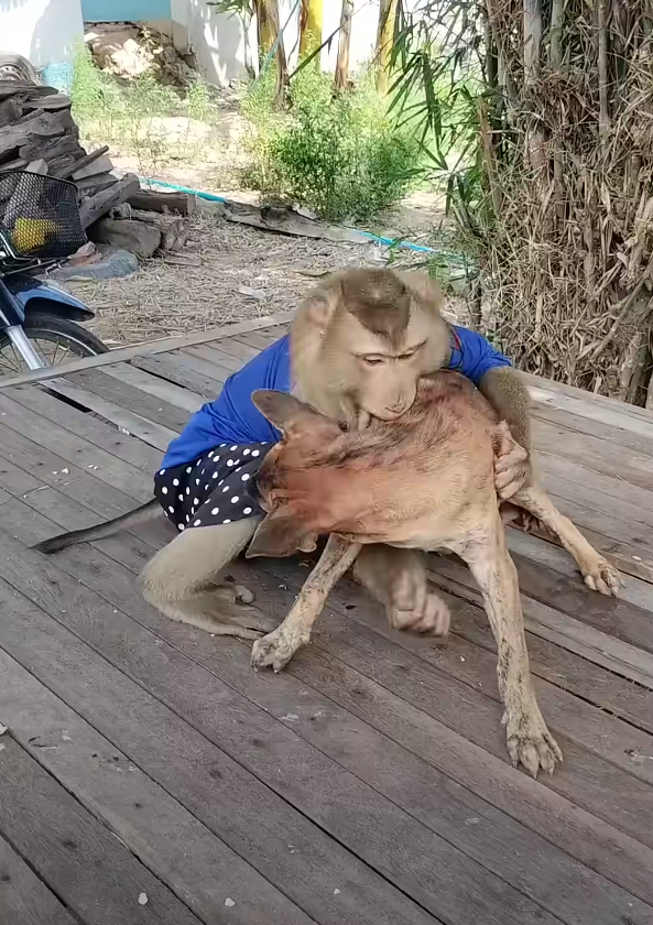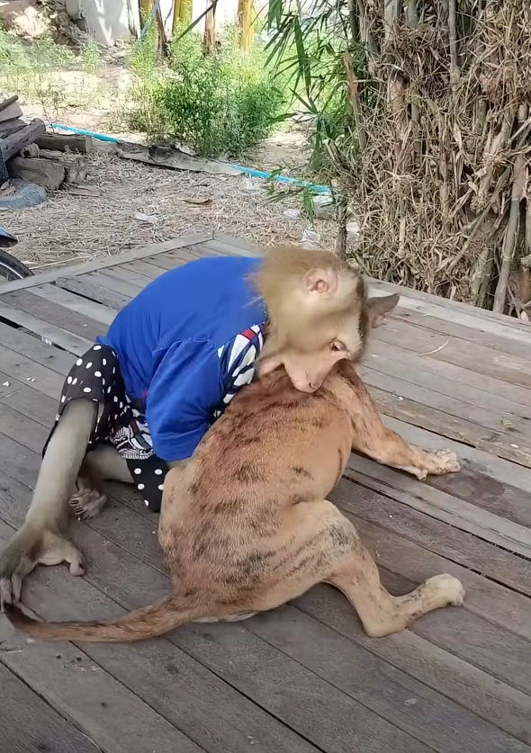 OG loved to steal laundry from the clotheslines. He would grab a scarf or shirt, run across the yard, and climb onto the roof of a house. SokYaa would bark in protest, running in circles below, while ToTo calmly chewed his grass, watching as if to say, “There he goes again.” Eventually, OG would toss the stolen cloth back down, squeaking with laughter, and then leap into SokYaa’s fur for a ride.