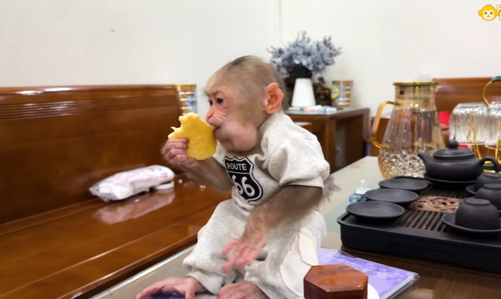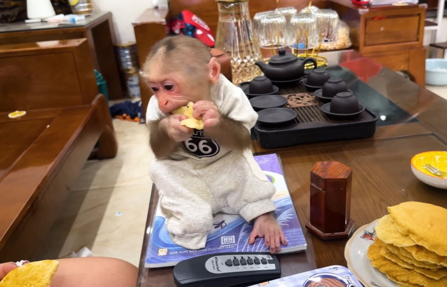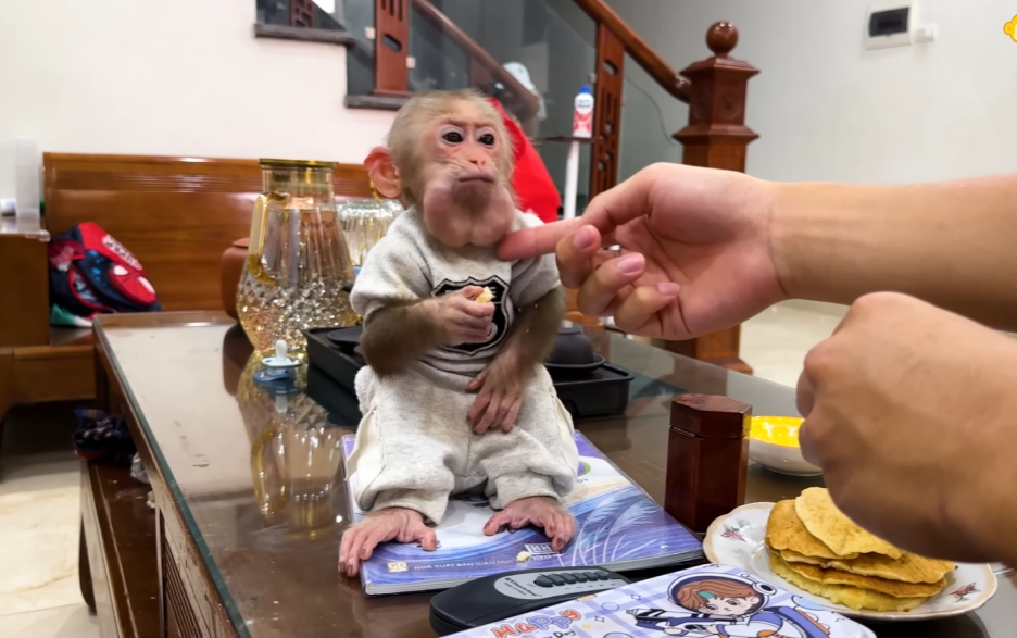 The sisters sat at the kitchen table, munching happily. Mina licked chocolate from her fingers, her cheeks puffed like a chipmunk’s. Lala couldn’t help laughing at her messy little sister.