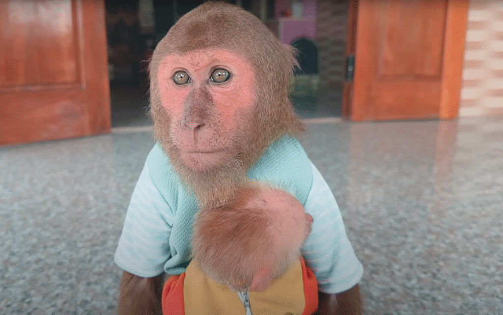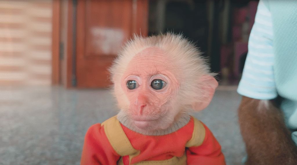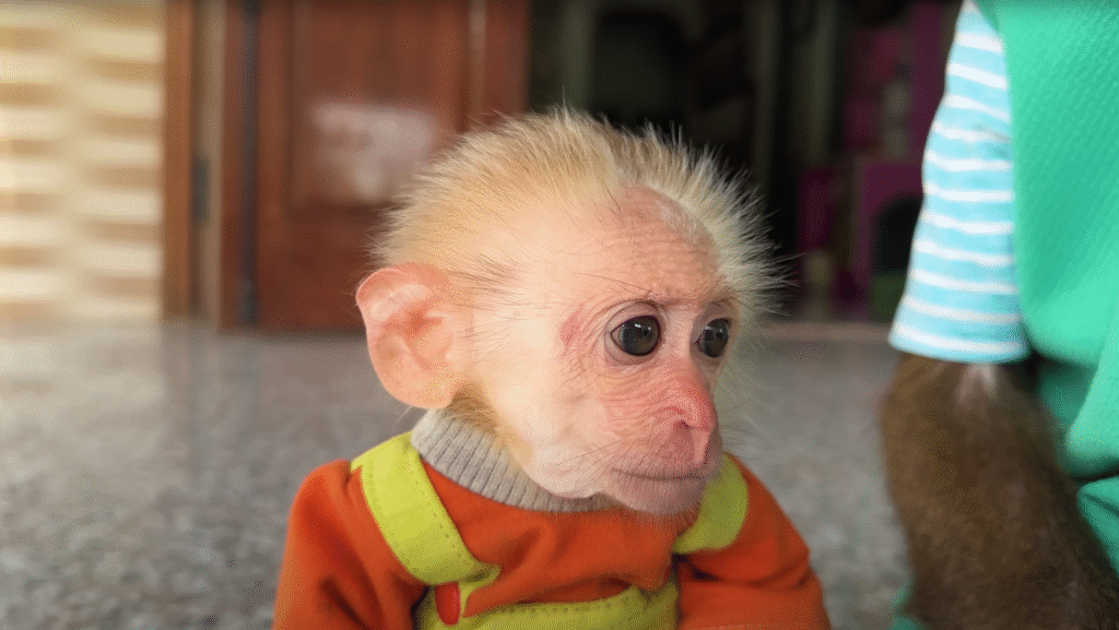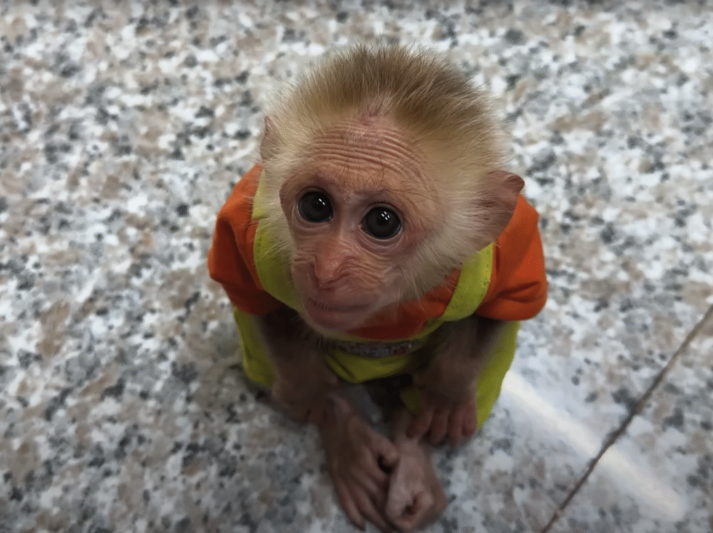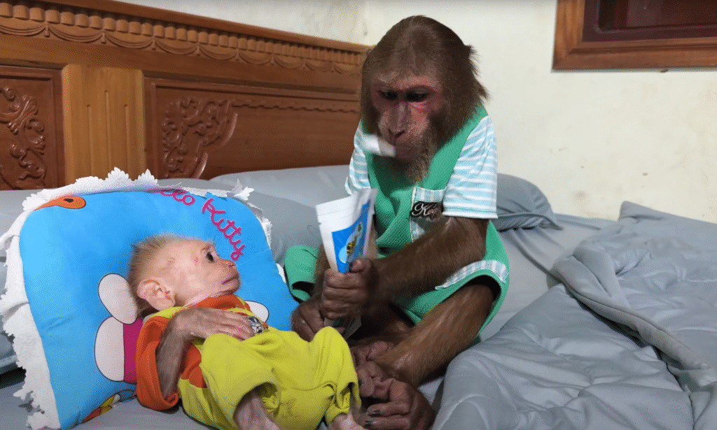 “Are you feeling sick, little one?” he asked, gently stroking Baby Monkey’s head.