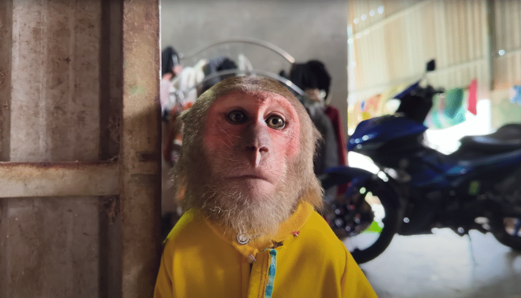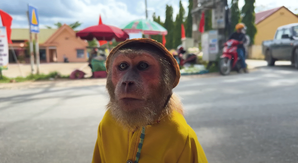 The day began like any other. CUTIS and his baby monkey had set up their small corner at the bustling village market. People had already gathered, excited to see the tricks, games, and laughter the pair always brought. Children pulled at their parentsâ hands, eager to watch the monkey hop around in his tiny vest.