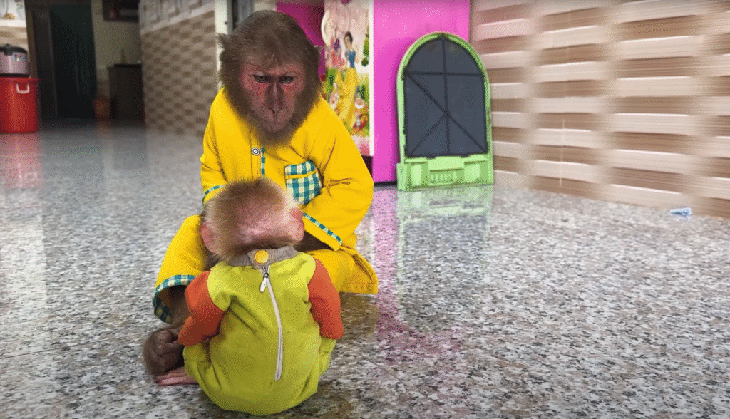 The monkeyâs first instinct was not to laugh but to help. Even in confusion, its little heart was focused on protecting CUTIS. This showed the pure bond of care that animals often have for humans. - Play Can Strengthen Trust