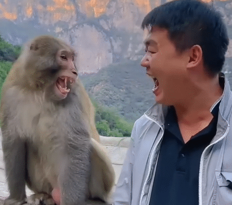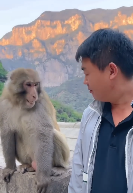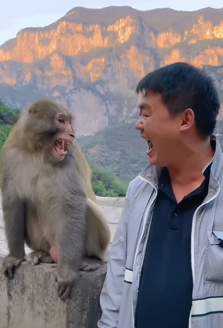 One human laughed and said, “This is going straight to the internet. Title: Monkey Brother Laughed So Happily That He Became a Spirit 🤣🤣!”