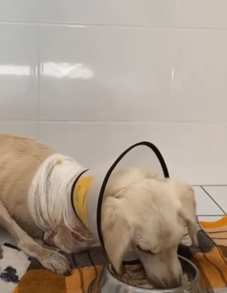 At first, Lucky was scared whenever someone touched his paw. He would look up with those wide, soulful eyes, unsure if it would hurt again. But every time, the vet nurse stroked his head softly and whispered, “You’re safe now.”