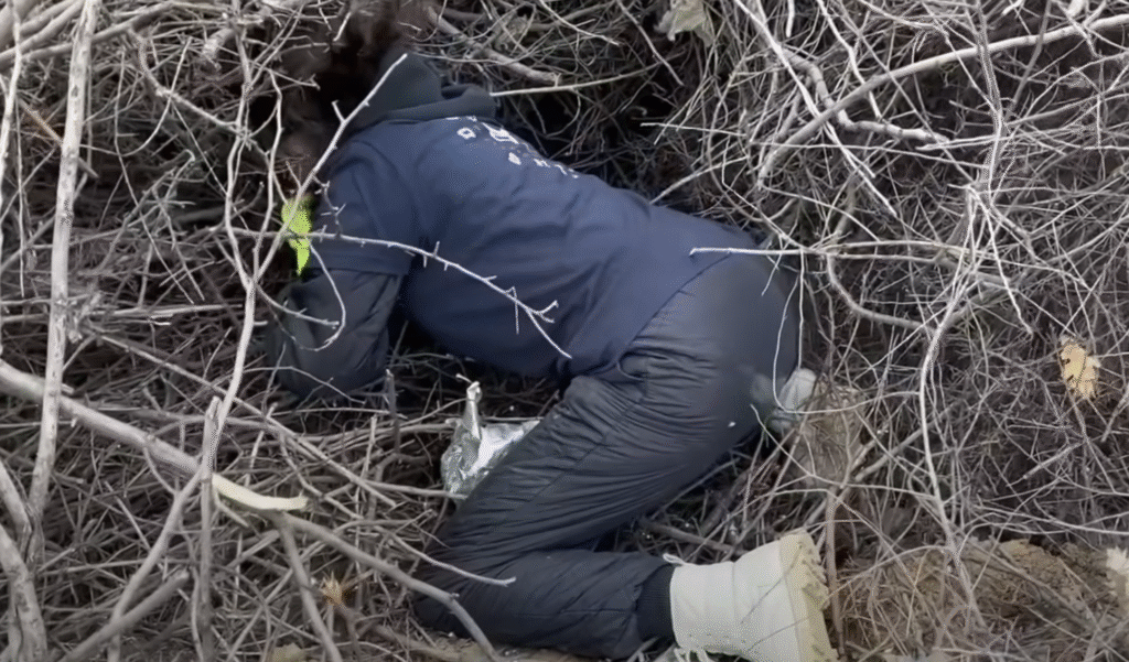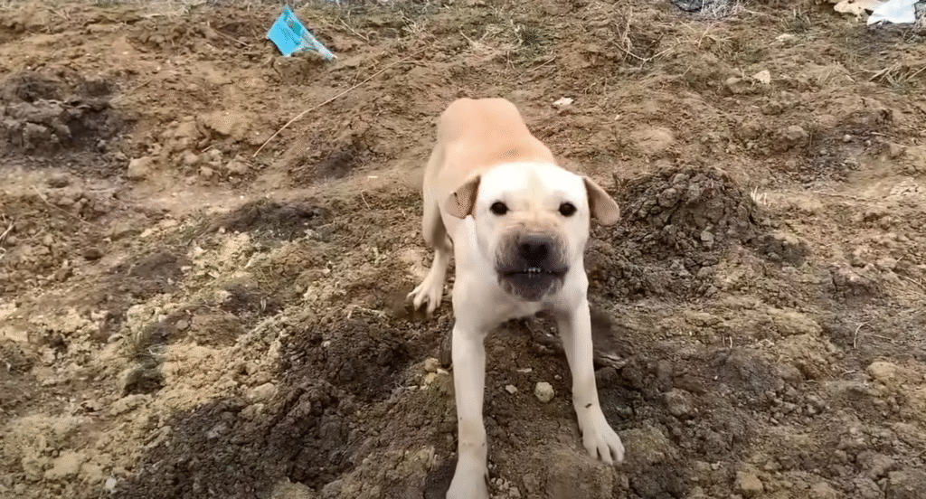 The mama raised her head. Her tail thumped once against the mud, hesitant but hopeful. She didn’t run. She didn’t snarl. She seemed to know: These people might help.