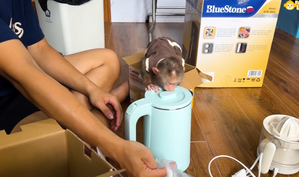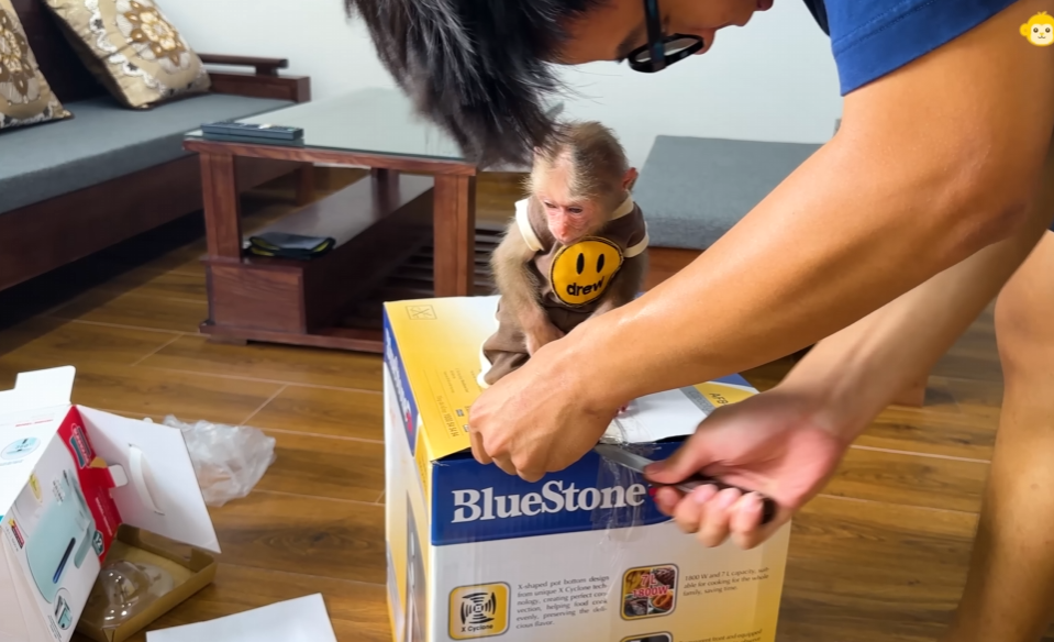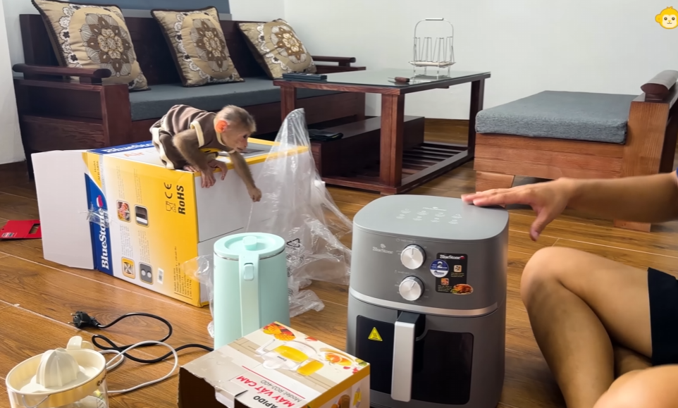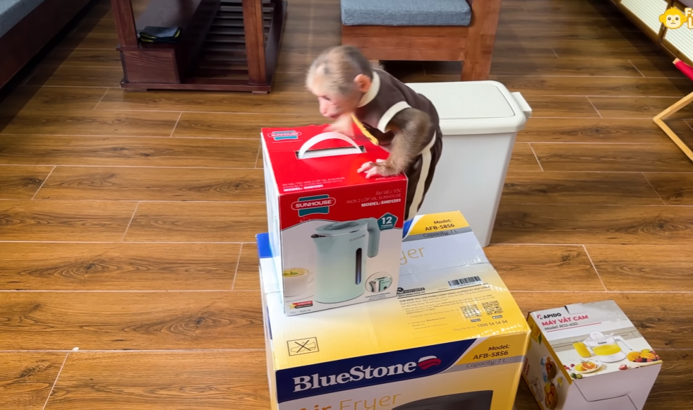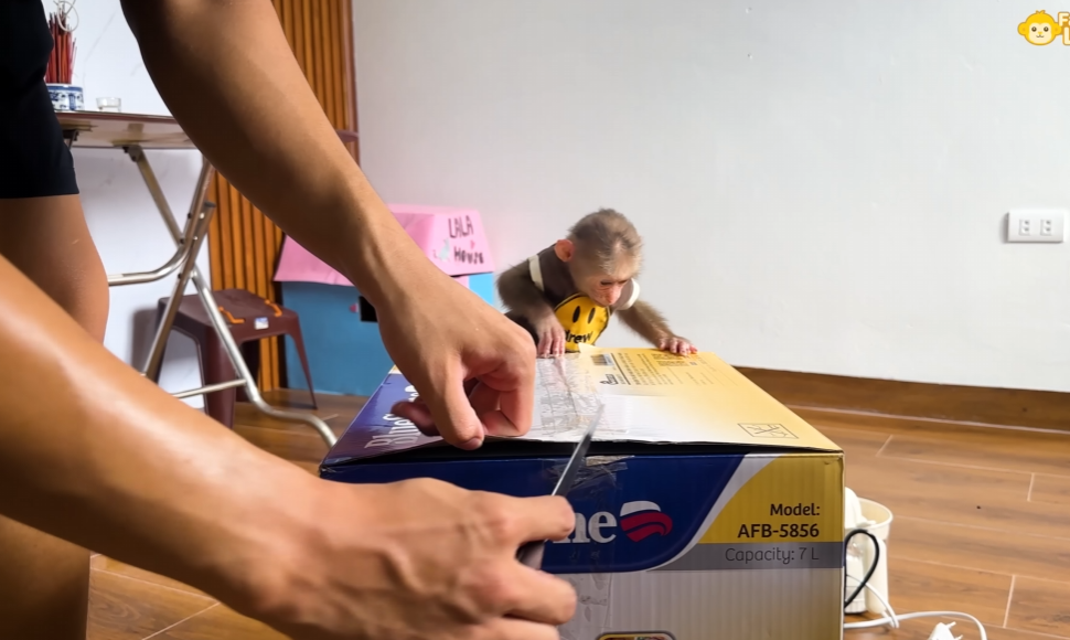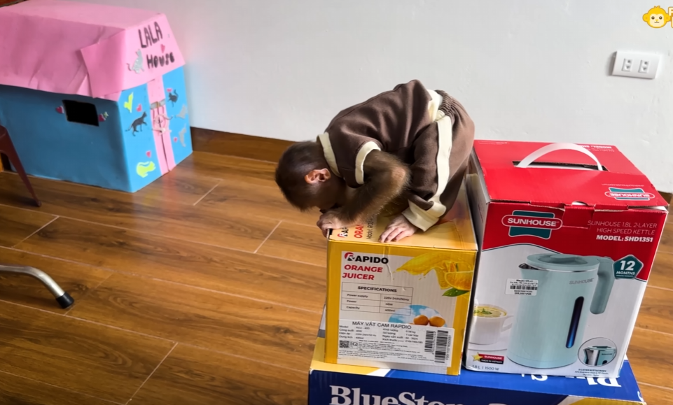 The microwave and rice cooker came next. Lala pretended she was a cooking show host as she pulled the microwave out of the box. “Welcome to Lala’s Kitchen! Today we have a brand-new microwave, perfect for popcorn!”