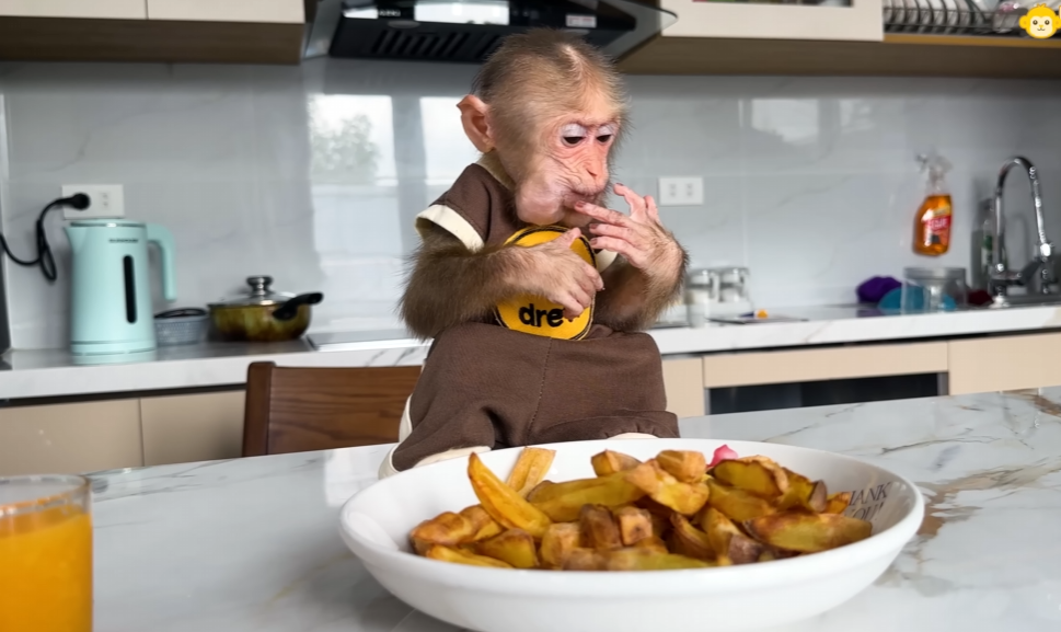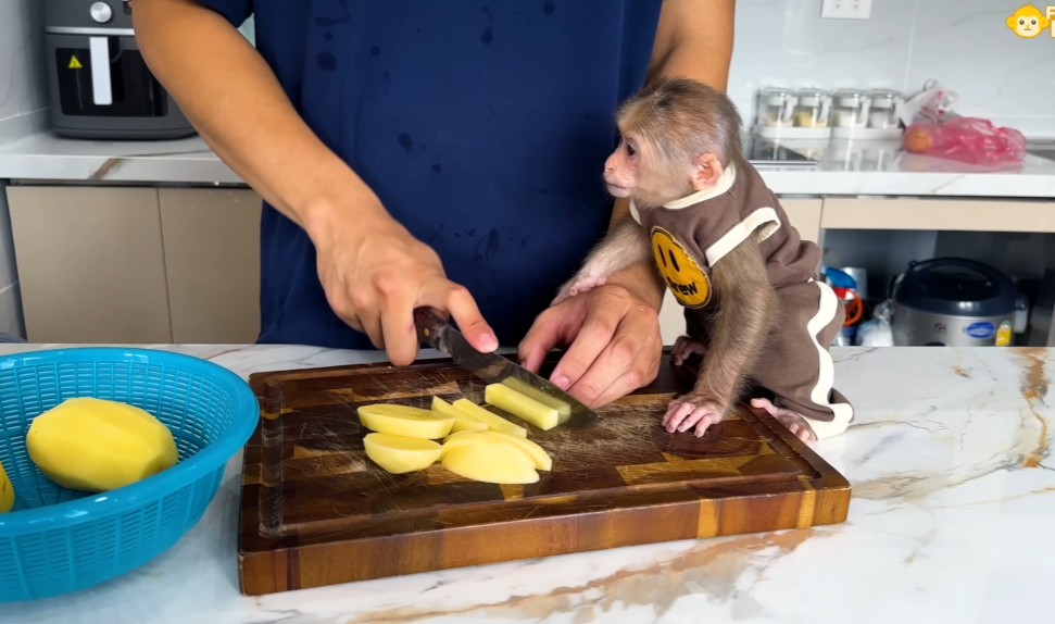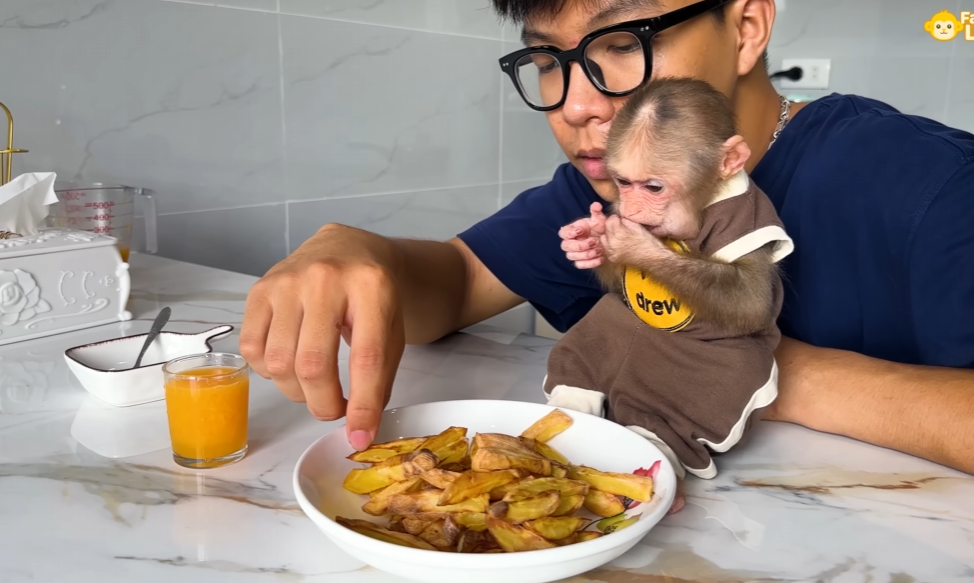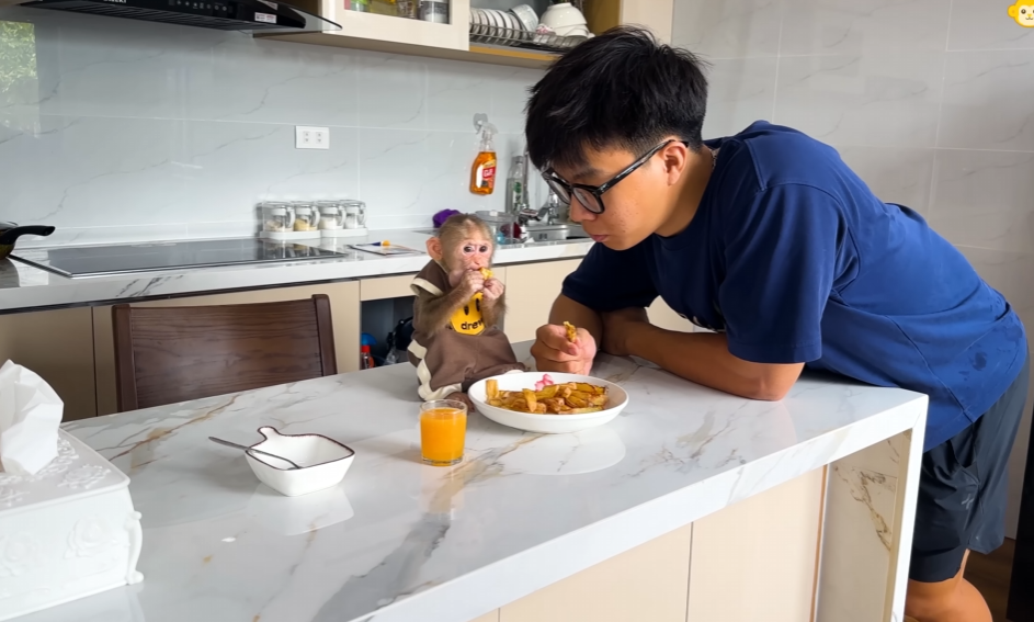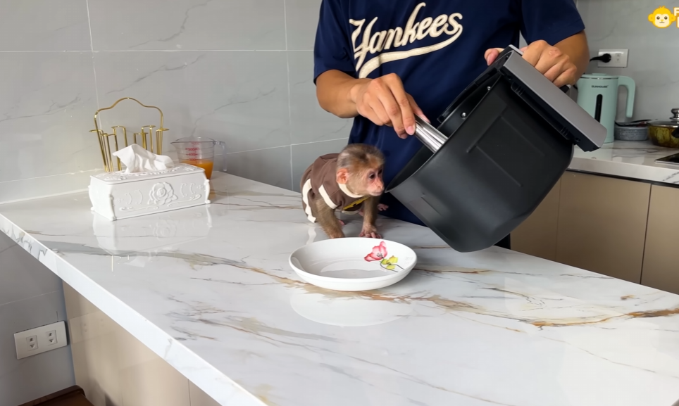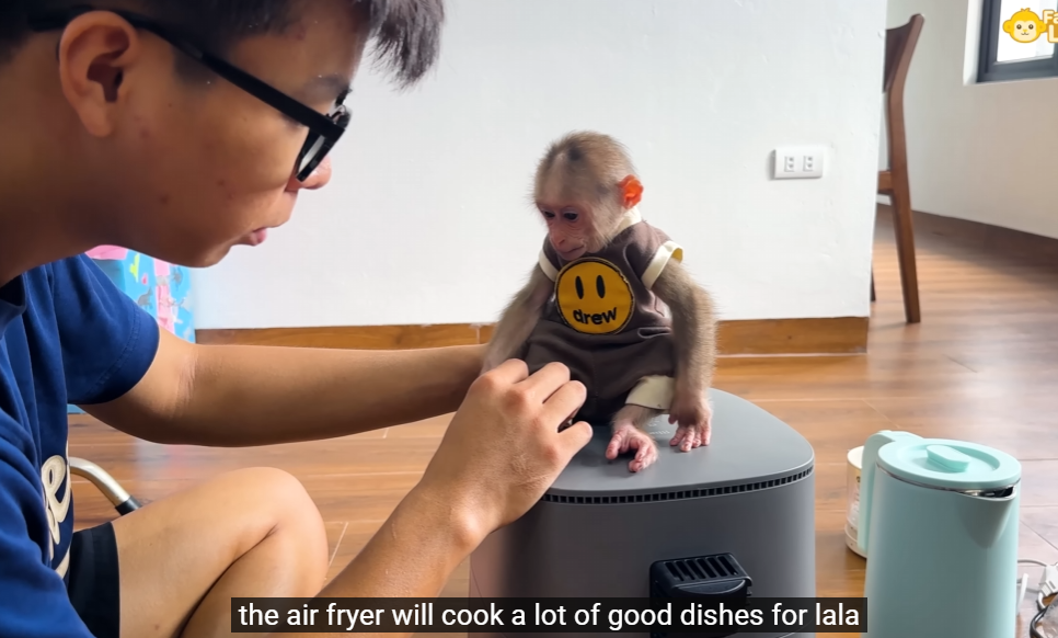 They plugged in the rice cooker and tested it by making a small batch of rice. While the rice cooked, Lala prepared bananas and milk in the blender. Together, they enjoyed their first homemade meal in the new house: fresh rice with sweet banana smoothies.