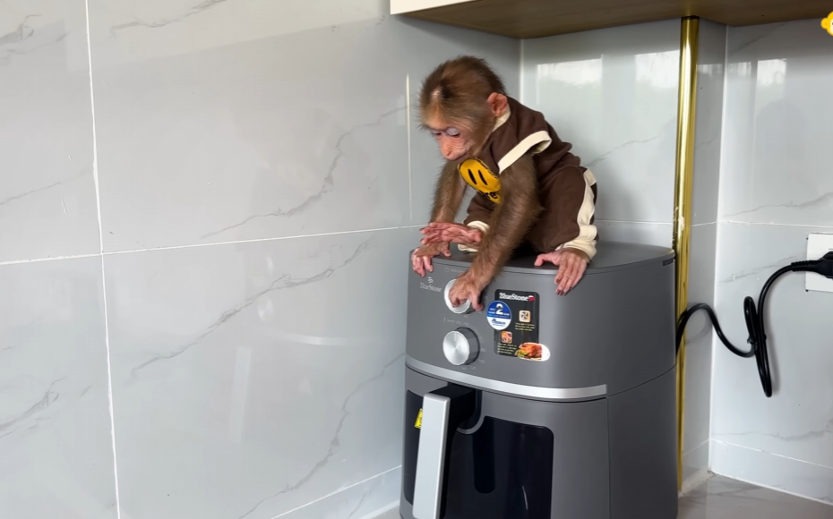 Before bedtime, Lala made one final inspection. She touched the fridge, checked the washing machine, and peeked at the rice cooker still warm from earlier. Satisfied, she returned to Dad.