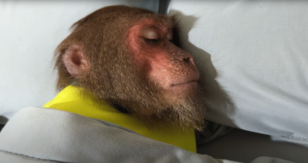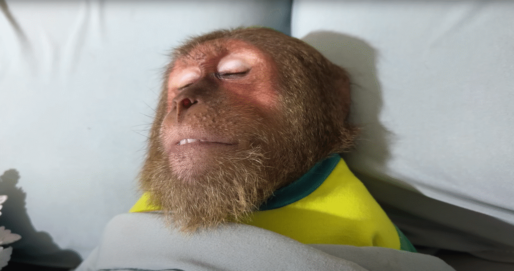 Later in the afternoon, CUTIS pretended to nap near the riverbank, his ears alert. Sure enough, Dad whispered to the baby monkey: