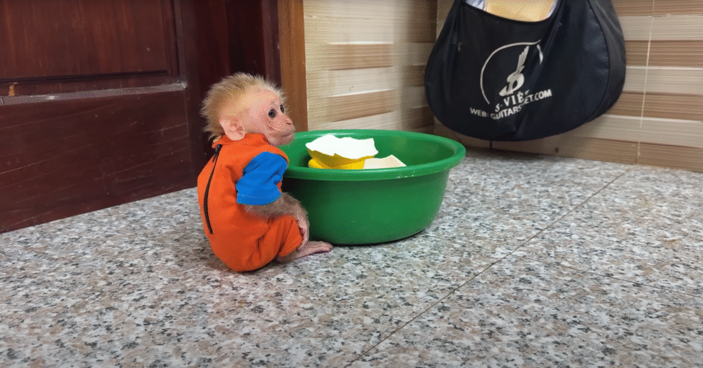 Dad and the baby monkey were now wearing leaves on their heads like crowns, hopping around as though they were jungle kings. Every time the baby monkey lost balance, Dad would scoop him up, spin him around, and start again. Their teamwork was messy but filled with so much joy that CUTIS couldnât help but giggle softly.