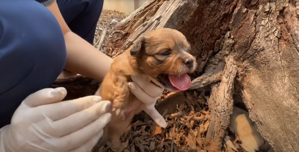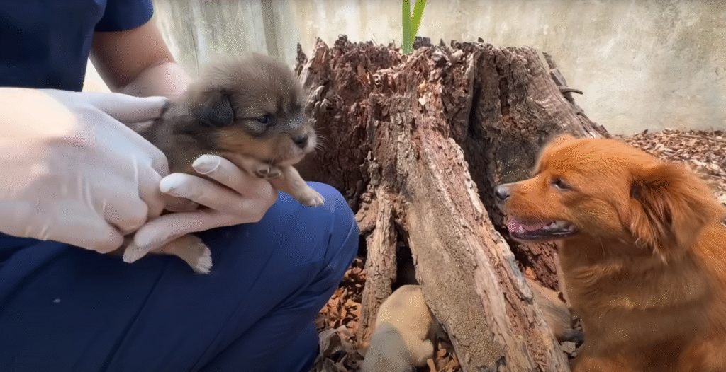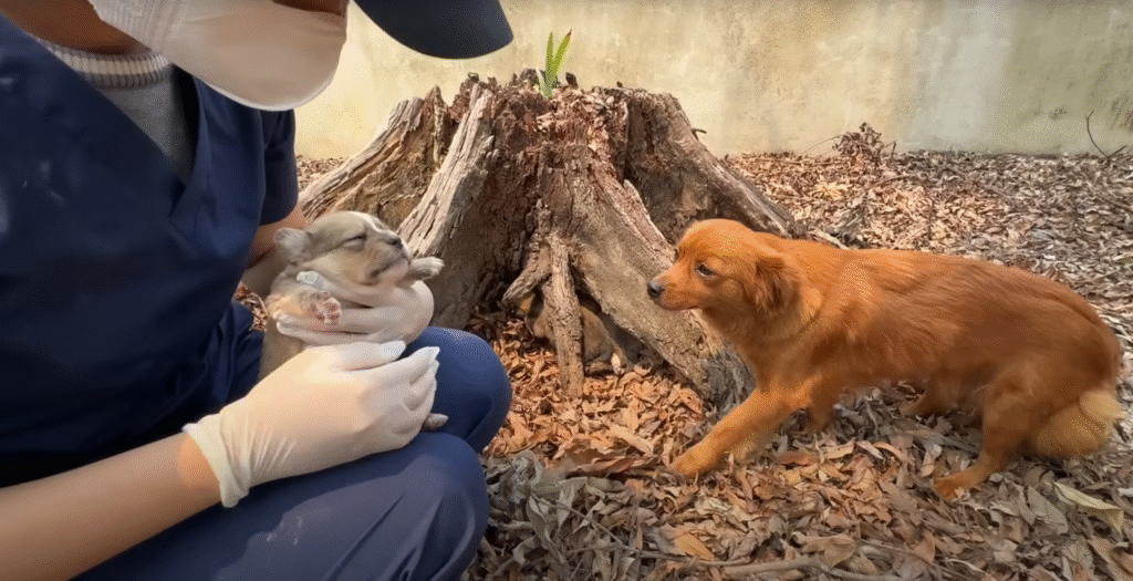Transporting them to a cooler, safer environment was urgent. The mother dog led the way with careful caution, her eyes never leaving her puppies in my arms. At the rescue center, we immediately provided cold water, shade, and fans to help them cool down. The puppies were tiny and fragile, their bodies already showing signs of dehydration and stress from the heat. The mother dog stayed close, nuzzling them, licking their fur, and guiding them to drink and rest. It was a display of pure, unyielding love—a mother dog’s instinct in full force.