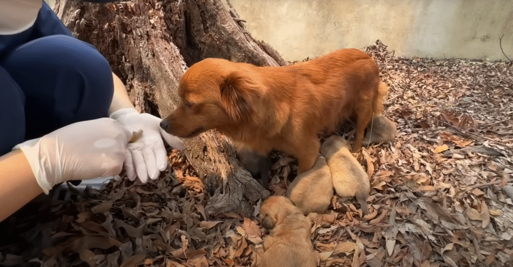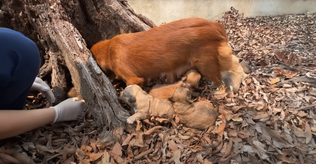 The puppies, initially weak and wary, slowly began to thrive under her care. Each feeding, each gentle lick from their mother, strengthened them and allowed them to recover from the harsh conditions they had endured. The mother dog’s love was the driving force behind their survival; it was evident that without her, they would have struggled to endure the extreme temperatures and the dangers of their previous environment. She was both guardian and lifeline, an unyielding presence who put her own needs aside to protect her young.