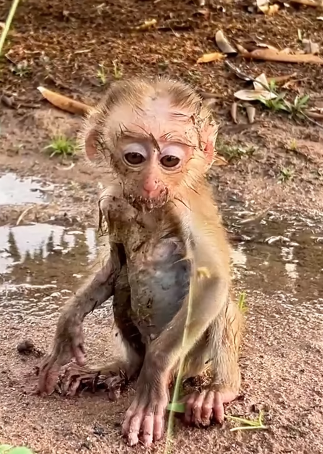 The afternoon sun cast a warm golden glow over the small village yard. The air was filled with the quiet hum of insects, the rustling of leaves in the breeze, and the gentle laughter of children. At the edge of the yard, under the shade of a large mango tree, sat Bibi the little monkey. His tiny hands were already covered in brown dust, and his bright eyes sparkled with mischief.