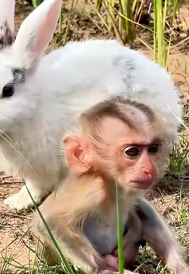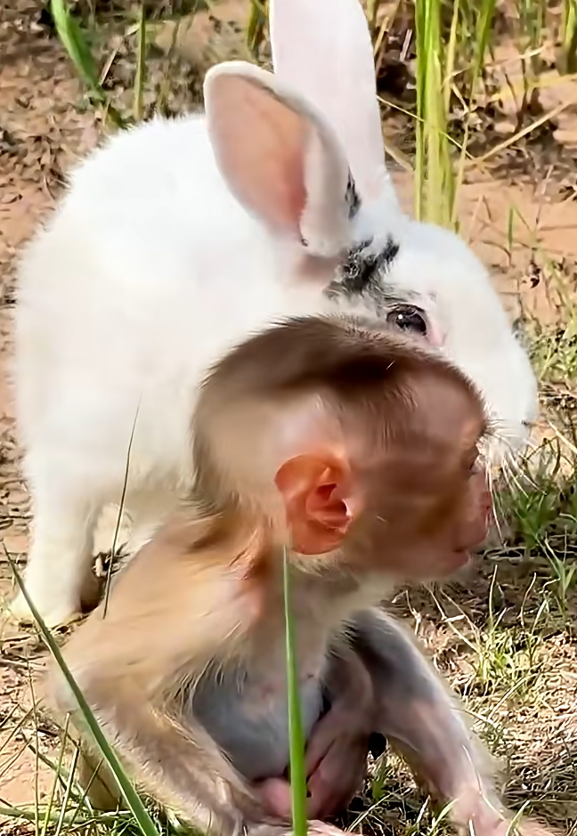 The sun rose gently over the small village at the edge of the forest, casting a soft golden light across the fields. In the middle of a quiet little yard sat two small friends—one a playful monkey named Koko, and the other a fluffy white rabbit named Momo. They weren’t ordinary animals; they were companions who shared everything together, from snacks to adventures.