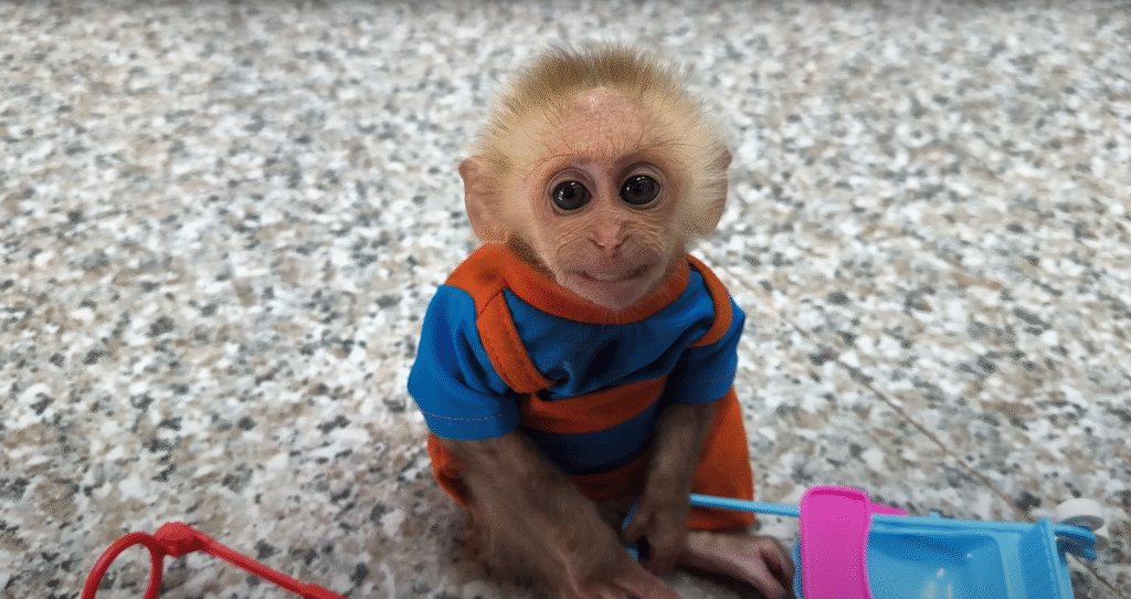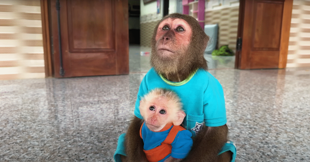 The baby monkey, still shy, finally reached out to touch the newbornās tiny hand. When the baby wrapped its fingers around his, he gasped in surprise and giggled softly. In that moment, he realized he wasnāt losing Momās loveāhe was gaining a new companion, another heart to love and protect.