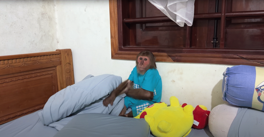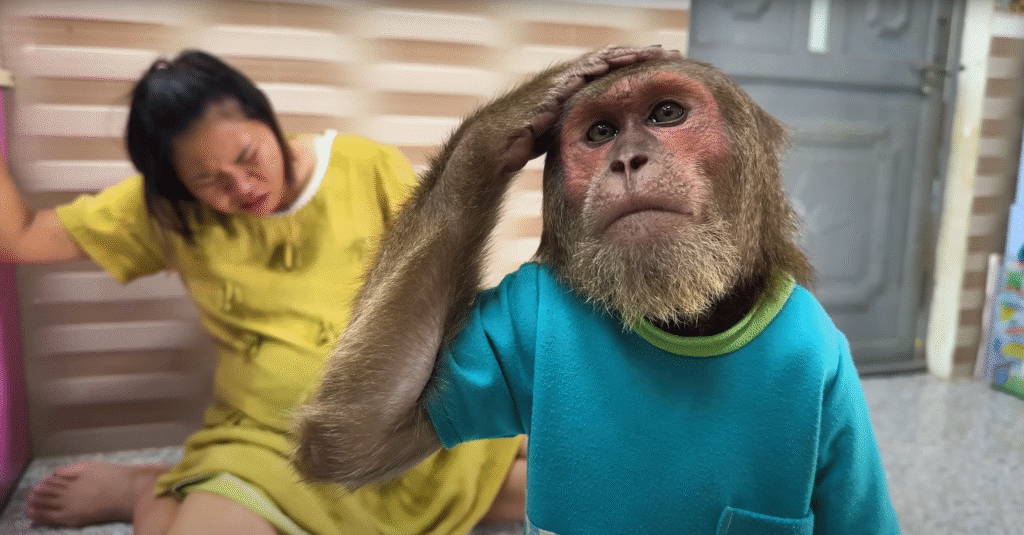 The baby monkey whimpered softly, his heart aching. He couldnāt find the words, so he buried his face into Momās fur, as if to protect her with his tiny body.