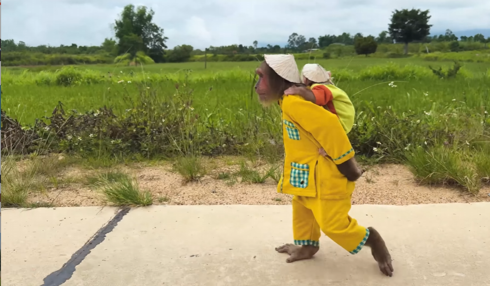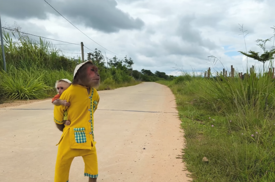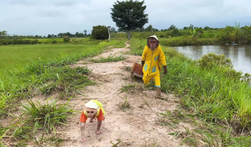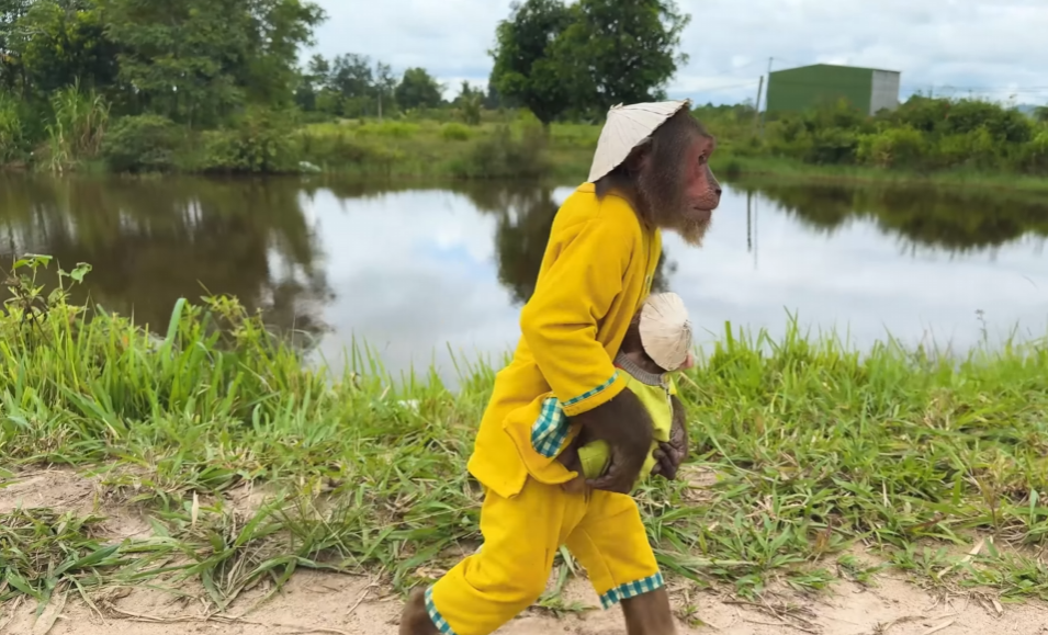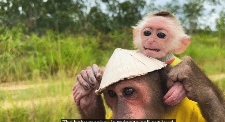 That morning, Dad was in the backyard, busy fixing a wooden fence that had been damaged during last night’s storm. His hands were covered in sawdust, and he hummed softly while working, not realizing that CUTIS and the baby monkey were about to face the biggest challenge of their young lives.