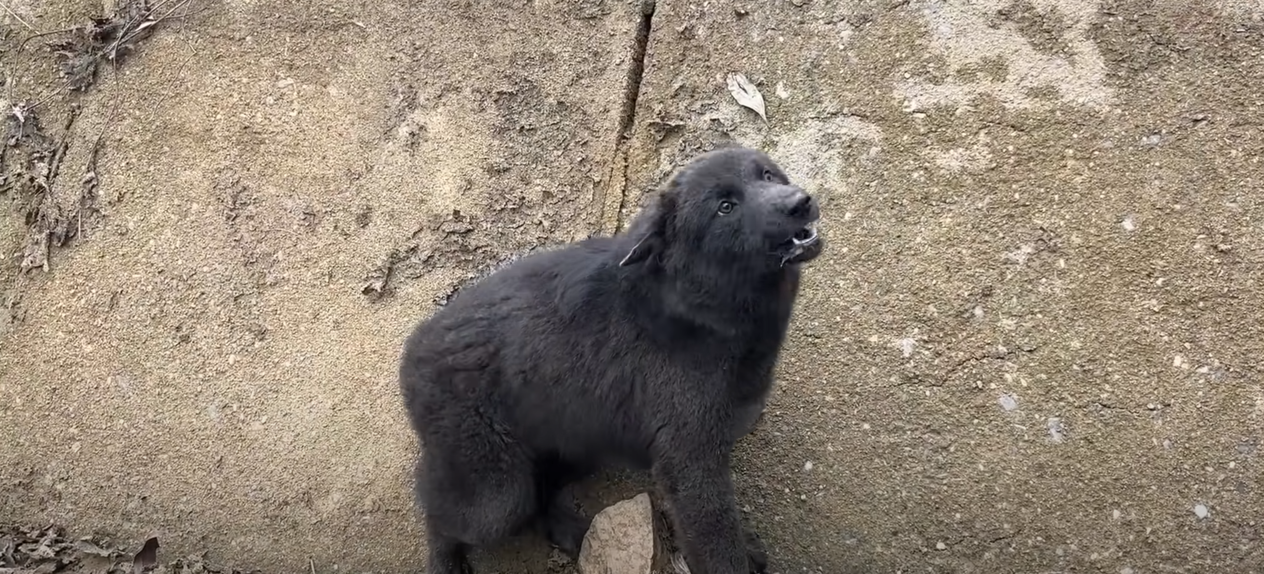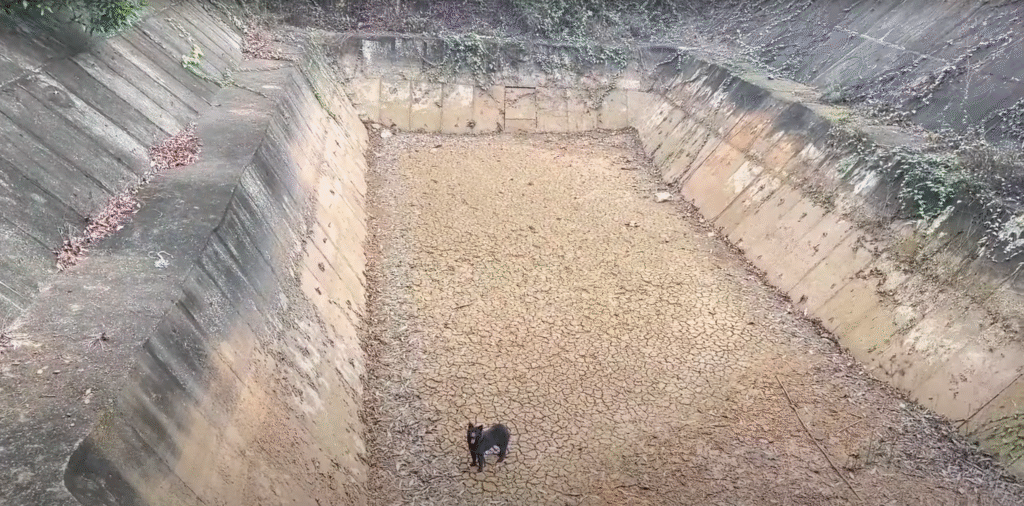 Down at the bottom, trapped among sharp rocks and shadows, was a large, ferocious-looking dog. His thick fur was matted with dust, and his amber eyes gleamed with both fear and rage. He barked and growled, scrambling at the stone walls in vain. It was clear he had fallen in, and the vertical walls gave him no escape.