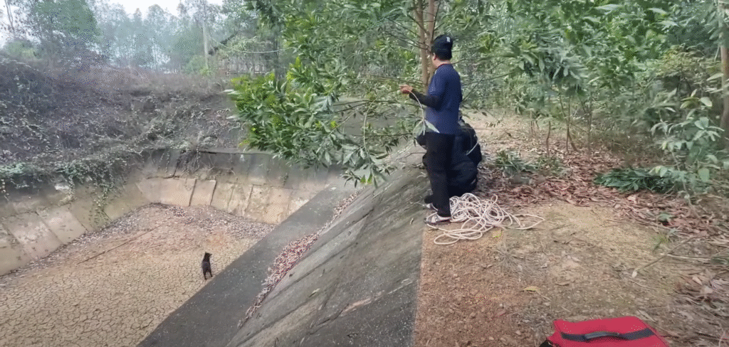 Minutes dragged into what felt like hours. Finally, the dog edged close enough for Dara to attempt the riskiest step. With trembling hands, he tossed the last piece of meat near his boots. As the dog bent to eat, Dara gently looped part of the rope toward his body. The crowd above gasped, their whispers carrying down into the abyss.