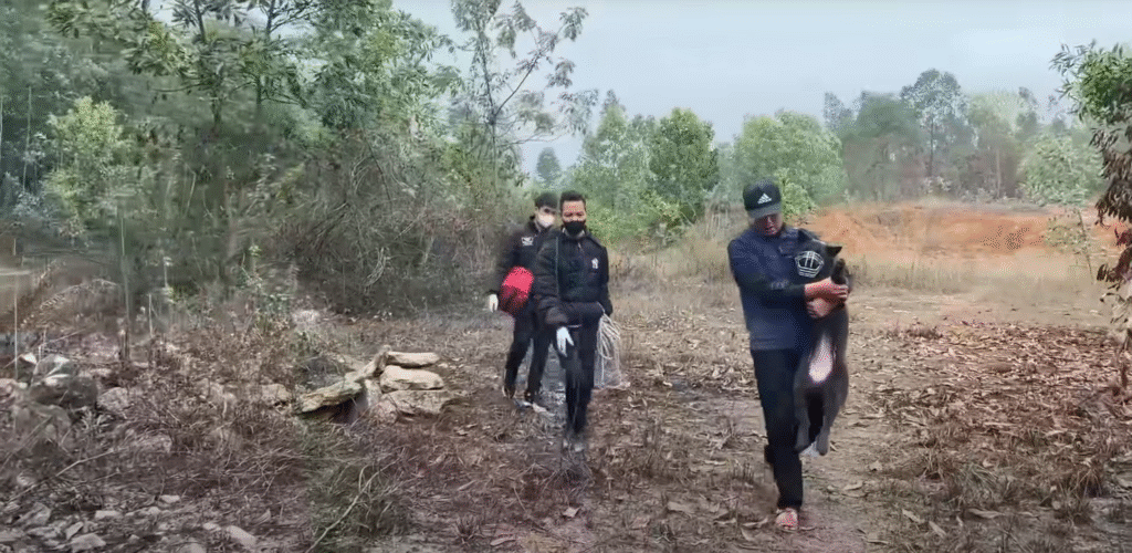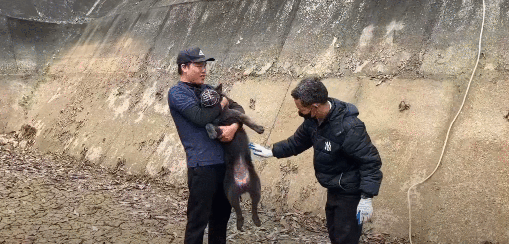 Every movement had to be calculated. One slip, one panicked lunge from the dog, and both rescuer and animal could be in grave danger.