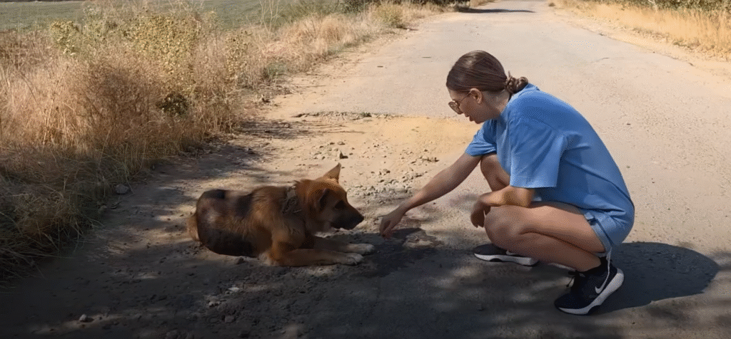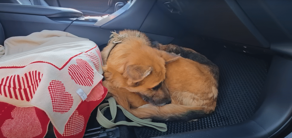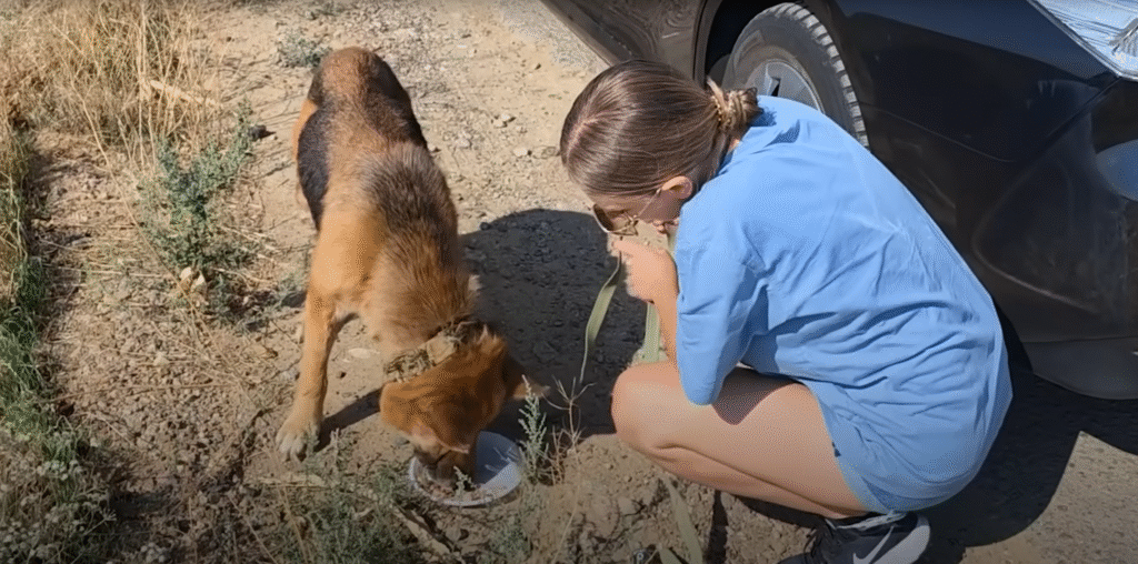 The woman fetched water from her car, pouring it into a small bowl. The Shepherd lapped it eagerly, her parched throat finally soothed. With effort, the woman lifted the frail body into her arms, carrying her into the car with the determination of someone who could not leave suffering behind.