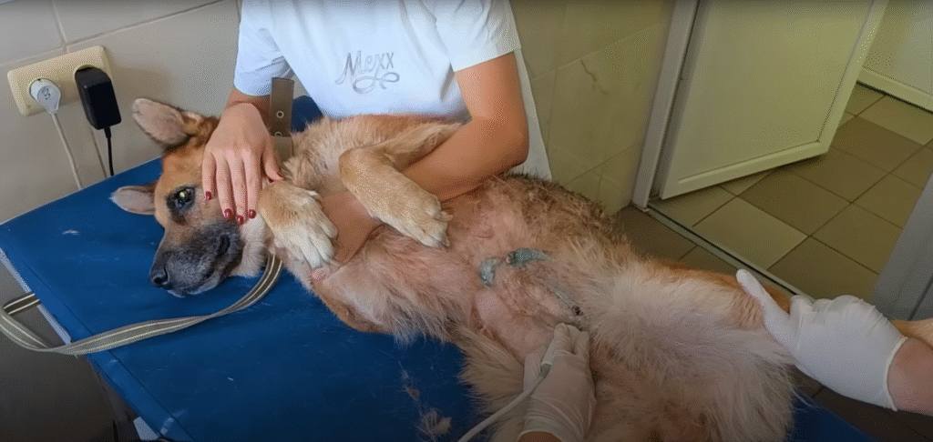 At a nearby veterinary clinic, the dog was examined thoroughly. The vet confirmed what was already clear: she was severely dehydrated, malnourished, and suffering from age-related conditions. Her chances of survival depended entirely on immediate care and continued love.