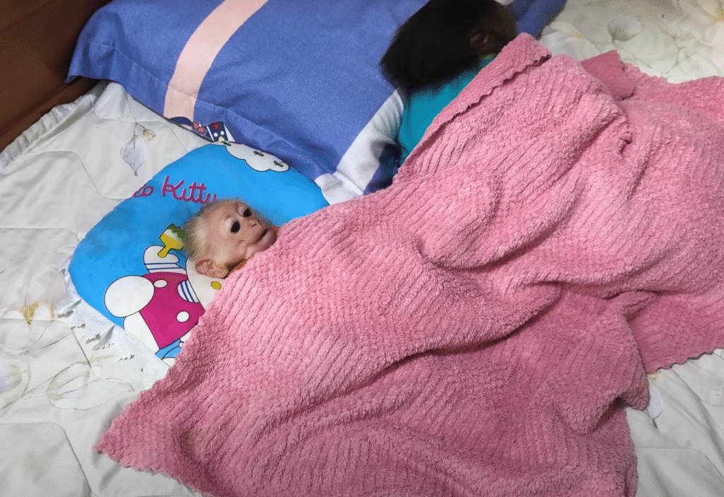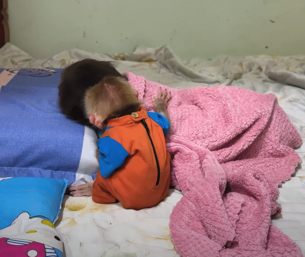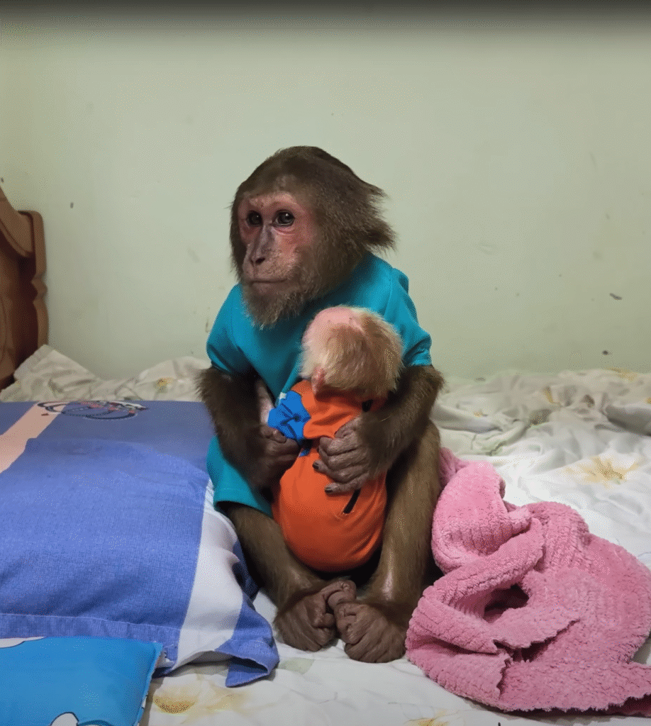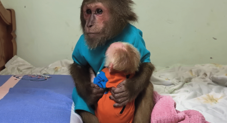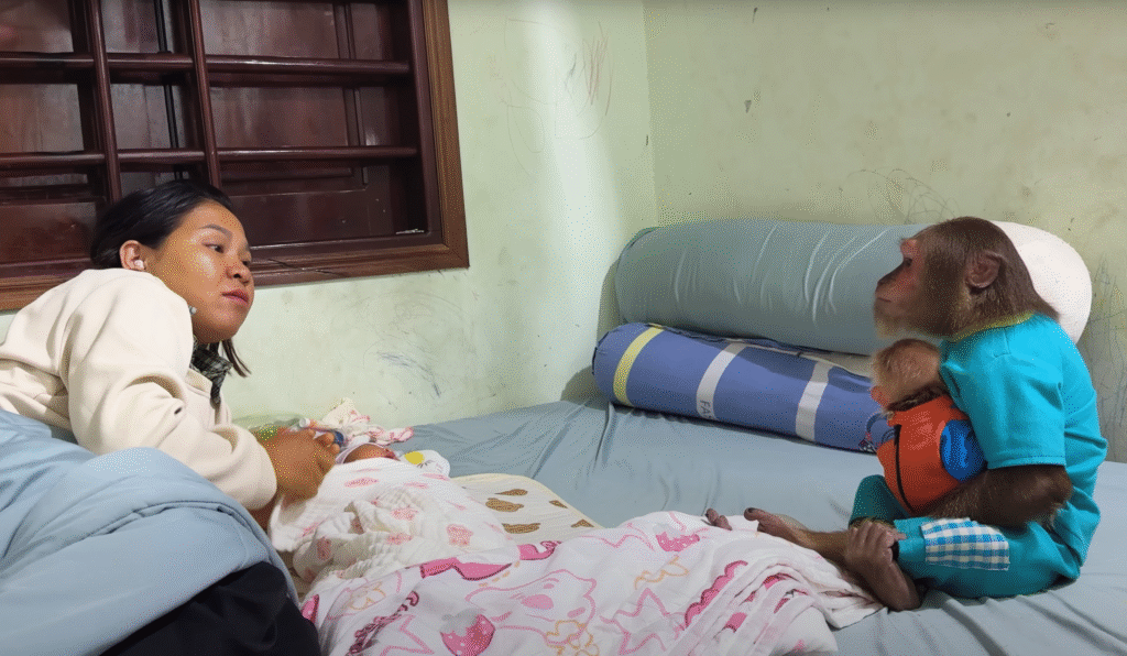 Though his energy was high, he quickly learned to be careful. Under Dadās gentle guidance, the baby monkey slowly approached and peered at the newborn. His expressive eyes softened, and for the first time, his movements slowed. He extended one tiny hand and carefully touched the blanket. It was a beautiful momentāproof that even the most energetic soul can recognize the sacredness of new life.