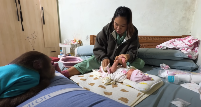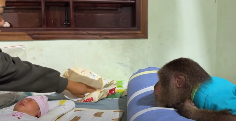 And so, the newborn grew up surrounded not only by the care of Mom and Dad, but also by the unwavering bond of CUTIS and the baby monkey — the siblings who, on a quiet day filled with love, secretly gave their very first special gift. 🥰🙈