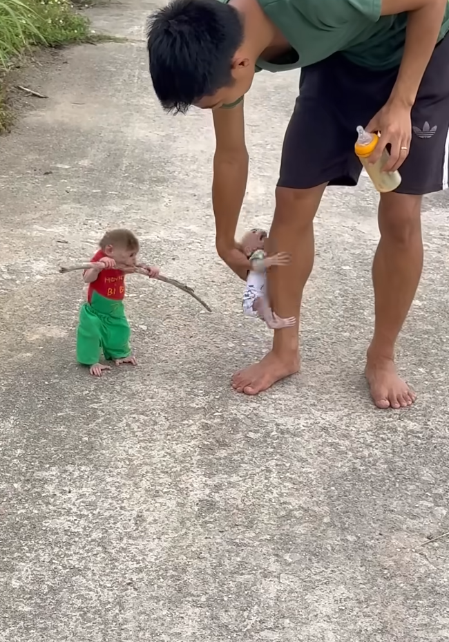 For a long moment, silence hung in the air. Dad’s stern eyes softened as he looked from Bibi to the frightened baby monkey. Slowly, the weight of the scene pressed on him: Bibi’s bravery, his willingness to protect his sibling, and the baby’s innocent mistake.