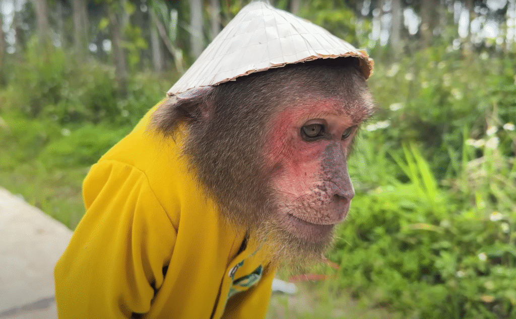 CUTIS shrugged, pretending to be casual, but his proud smile betrayed him. The monkey, on the other hand, soaked up the attentionâposing, clapping, and even hugging one of the travelersâ arms as though demanding a reward.
