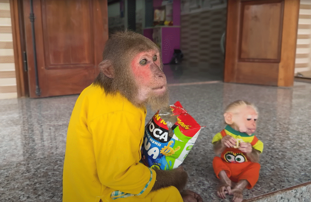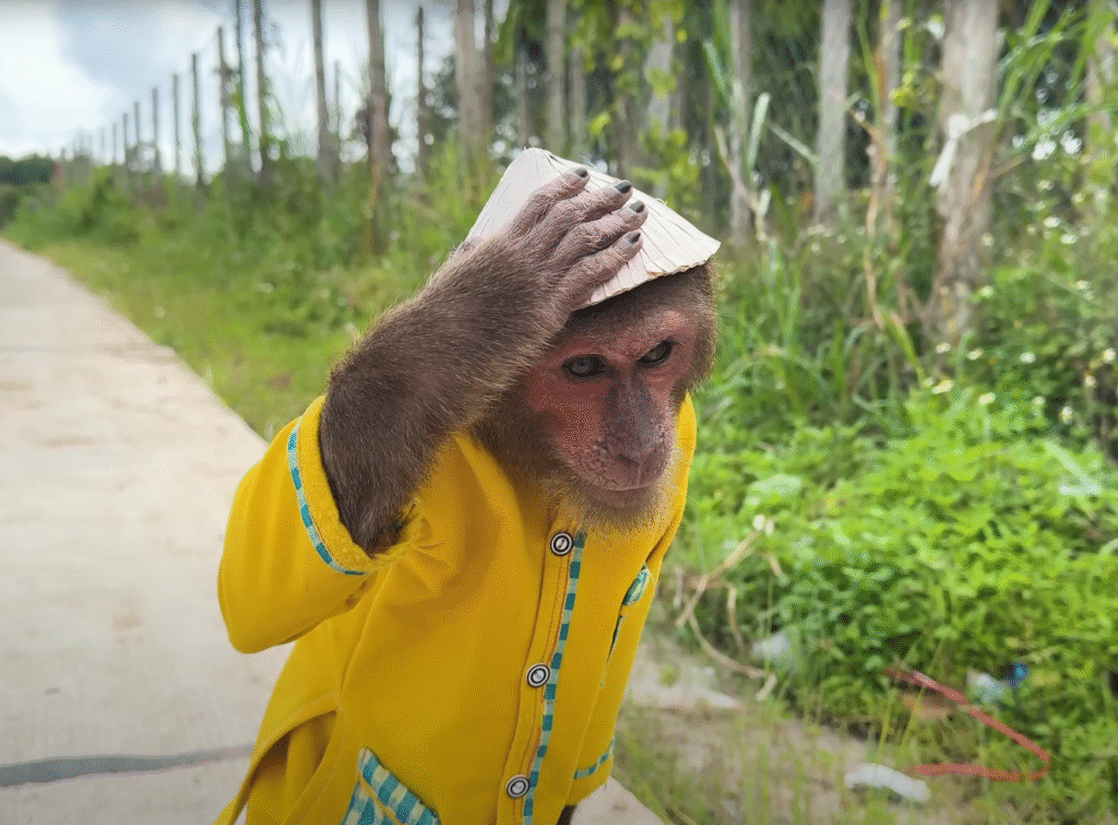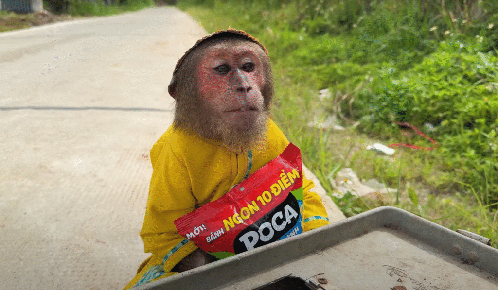 Impressed and grateful, the strangers offered CUTIS some biscuits from their bag. Before the boy could even take one, the monkey grabbed the entire packet and ran in circles, squeaking with glee.