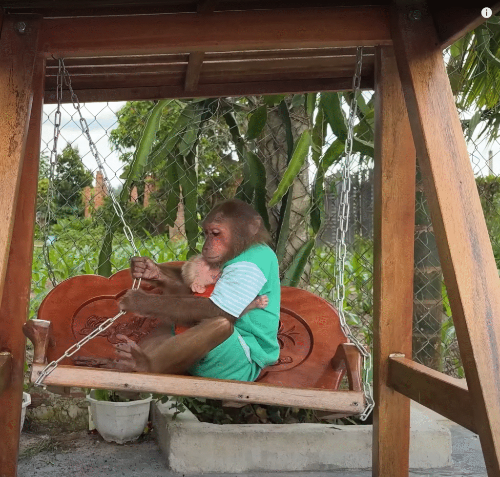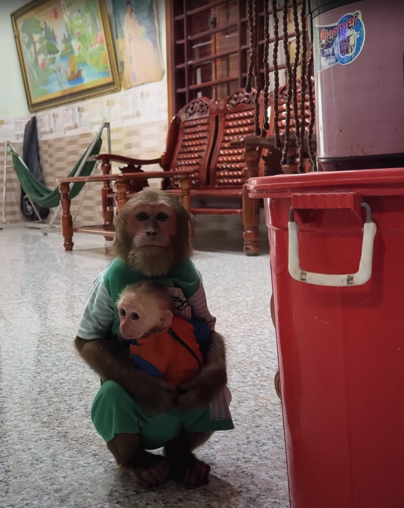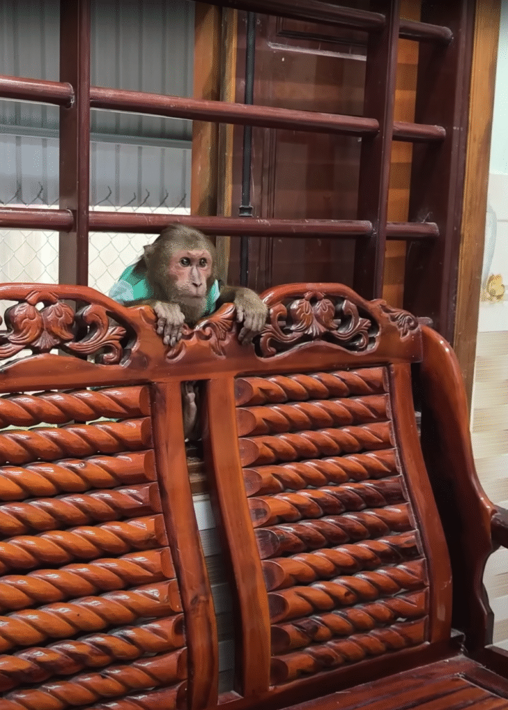 Like true partners in mischief, they quickly hatched a plan. CUTIS would distract the chickens in the yard so they wouldn’t make noise, while the monkey’s job was to climb the chair, grab the phone, and bring it back to their hiding spot behind the water jars.