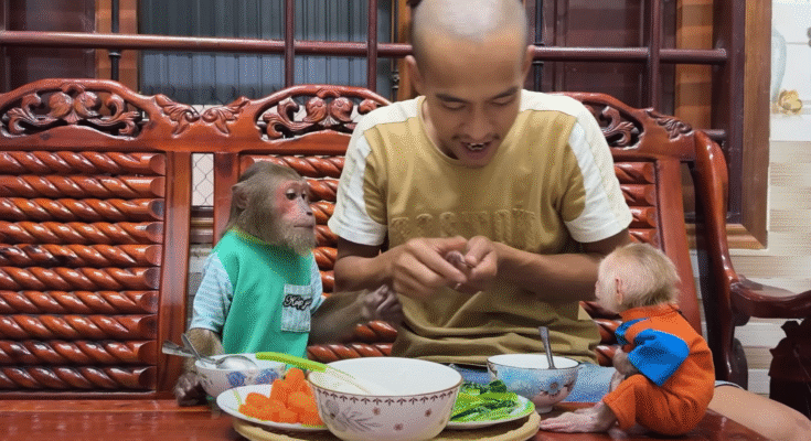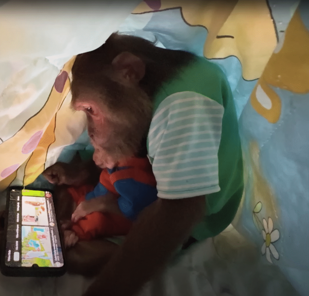 That evening, Dad kept his word. He downloaded a simple children’s game and showed CUTIS how to play while the monkey watched closely. Soon, the three of them were laughing together, the earlier sneaky mission turning into a shared memory.