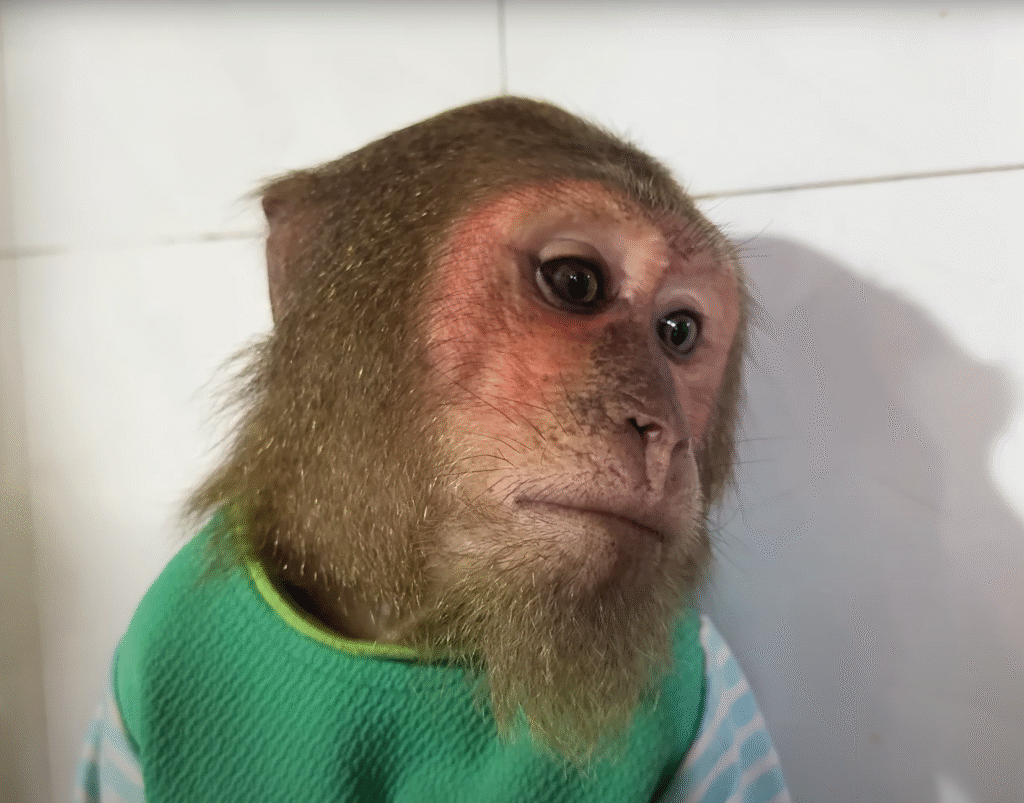 CUTIS lowered his head. The monkey peeked out, eyes wide and innocent.