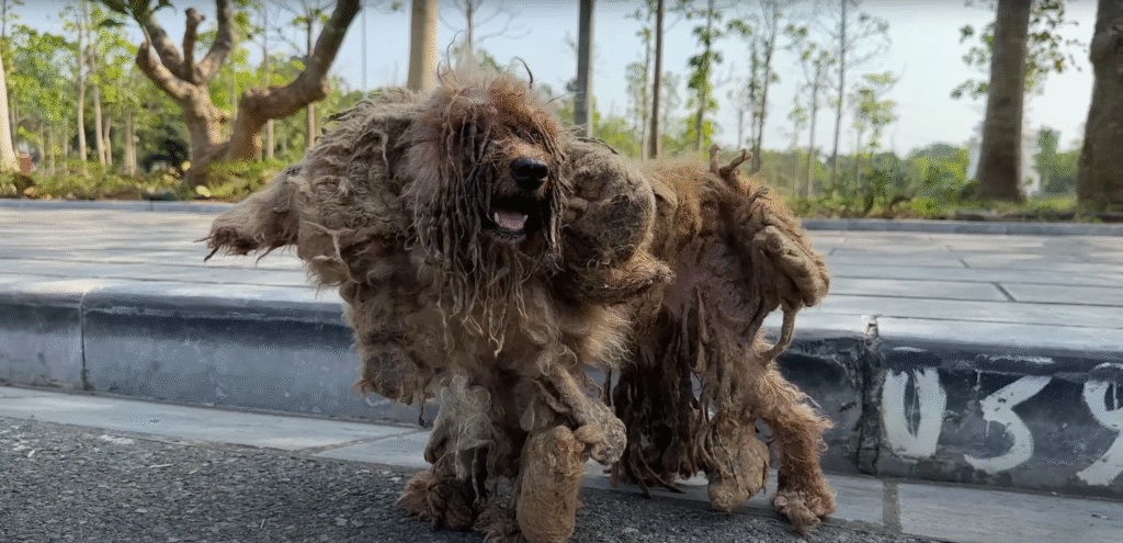The dogâs fur had been allowed to grow uncontrollably for years. Dirt, leaves, and debris were embedded deep within the coat. In some areas, the mats were so tight they had started to fuse with the dogâs skin, causing irritation and small infections. You could see the animalâs suffering in its slow, hesitant movements. And yet, there was a spark in its eyesâa glimmer of trust, hope, and the desire to be cared for.