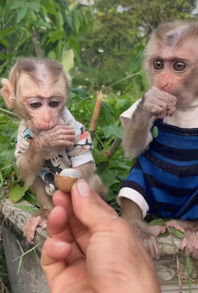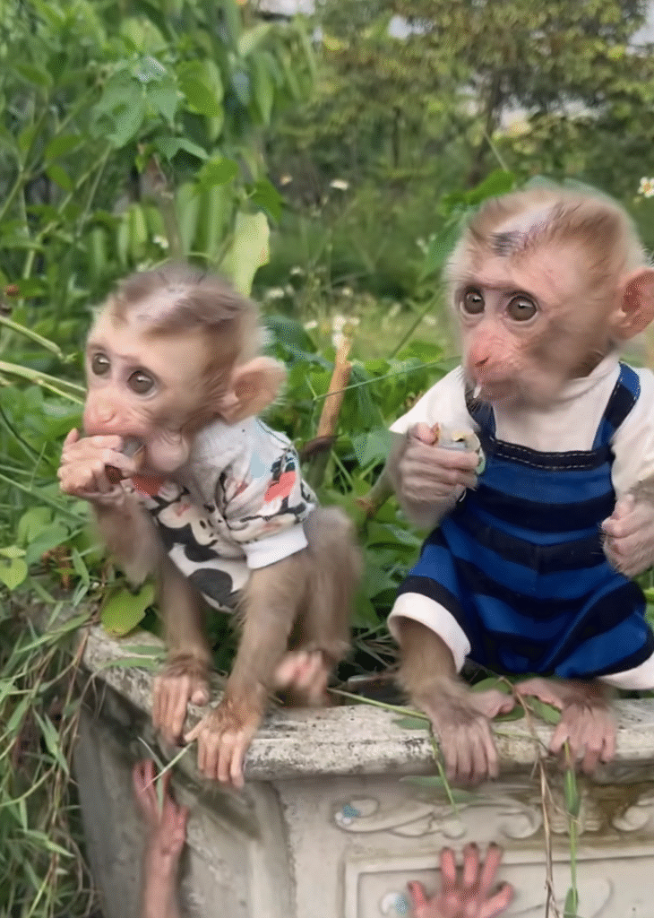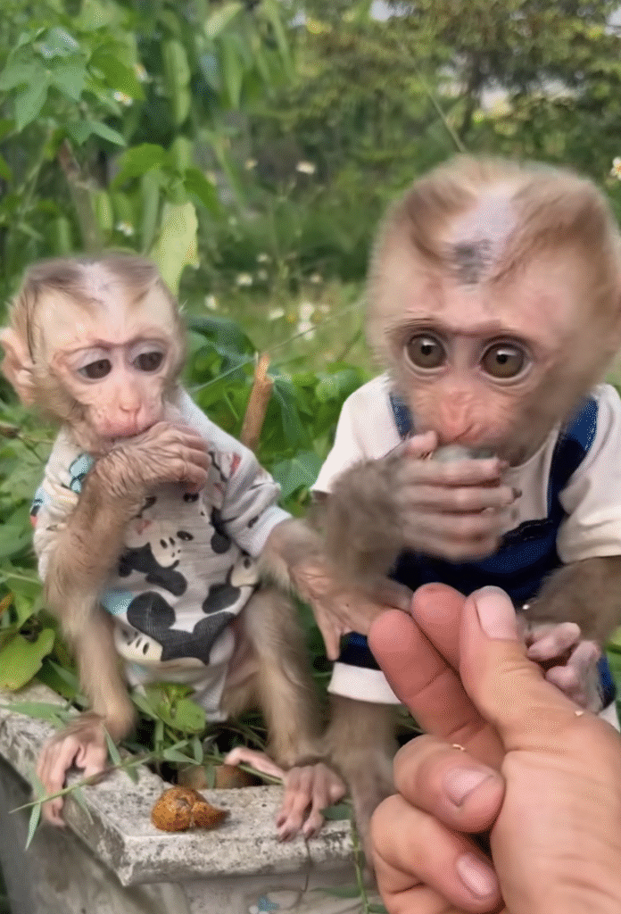 Playtime was when baby monkey’s cuteness truly shined. He loved running after butterflies in the garden, hopping from stone to stone, and hanging upside down from low branches. Sometimes he would surprise everyone by suddenly rolling onto his back and wiggling his little legs in the air, waiting for someone to tickle his belly. And when he laughed—it was a sweet, high-pitched giggle that could brighten even the gloomiest day.