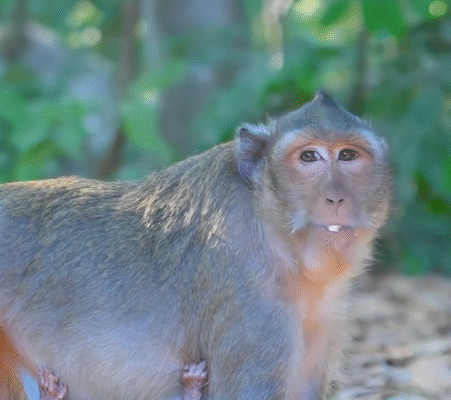 It was during a quiet morning walk that a young villager named Arun spotted Toto. The baby monkey was perched on a low branch, staring intently at a butterfly fluttering past. His tiny head tilted left and right, following the wings with wide-eyed fascination.